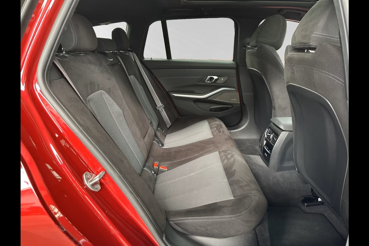 Super Fraaie BMW 330e xDrive Touring M-SPORT (LCi) van 11-2024 met 24.900km. gereden (1e EIG - Unfallfrei - Ex BMW AG) in het Fire Red Metallic met een Antraciet Alcantara / Stof M-SPORT Interieur (Sportstoelen) die naast de toch al rijke standaard uitrusting o.a. is uitgerust met: Adaptief M-Technic Sportonderstel, Steptronic-8 Sportautomaat, Variabele sportstuurinrichting, XtraBoost, Opbergpakket, ConnectedDrive Services (abonnement), ConnectedPackage Professional (abonnement), Bagageruimtepakket, Innovatiepakket, M Aerodynamica-pakket, M Sport-pakket, BMW IconicSounds Electric (geluidsgenerator), Electr. uitklapbare Trekhaak, Dakrails, Grille & Raamomlijsting in hoogglans zwart (Hoogglans Shadow-Line Uitgebreid), Electr. Bed. Glazen Panoramadak, Driving-assistent, Noodoproepsysteem, Head-up display, Parkeerassistent Plus incl. Achteruitrijcamera, Rijstrookwissel-waarschuwing, TeleServices, Exterieurafwerking: "BMW Individual" hoogglans Shadow Line (uitgebreide scope) & hemelbekleding Antraciet, Parkeerassistent met zelfsturend systeem, Neerklapbare hoofdsteunen achter, Automatisch dimmende binnen- en buitenspiegels, Keyless entry, Automatische klimaatregeling 3-zones, Comfort Access (open- en sluitsysteem), Lederen M technik Sportstuur, Verwarmde voorstoelen, electr. verstelbare voorstoelen L.V. incl. Memory, Zonneschermen voor de achter zijruiten, Zonwerend glas incl. Privacy Glas vanaf de B-Style, Sportstoelen voor, BMW Live Cockpit Professional, DAB-tuner, Harman & Kardon luidsprekersysteem, 19-inch L.M. Velgen - voor/achter: 8x19 / 8,5x19 in "Double-Spoke 791 M- Jet Black" incl. Runflatbanden & Wielsloten, M-Sportremmen in Rood Hoogglans, M-Veiligheidsgordels, Stoelbekleding: M Performtex / Stoff-Kombination schwarz, Alarm, etc, etc....