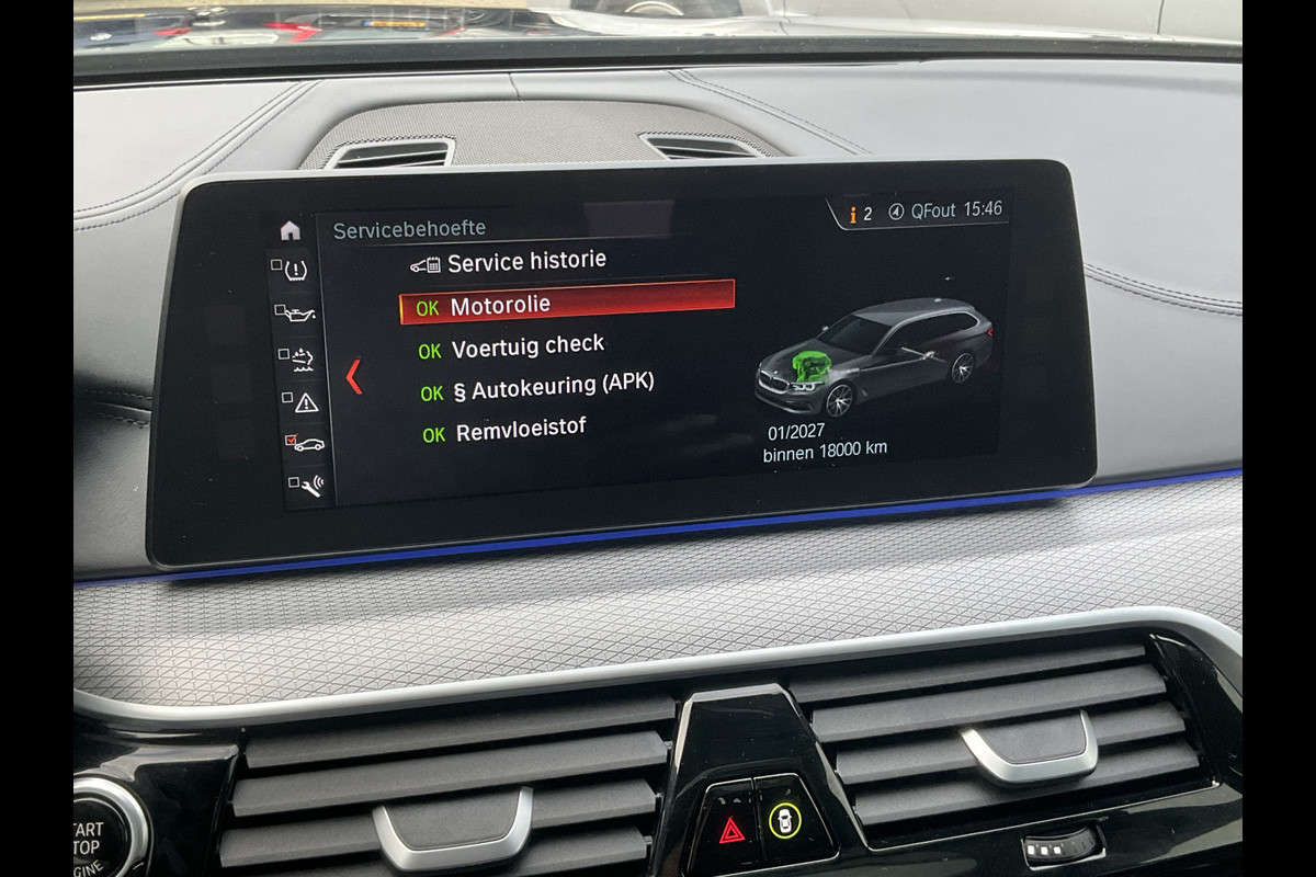Gemak dient de mens. Dankzij de spraaksturing bedient u de belangrijkste functie met uw stem. Deze BMW 5-serie Touring is 'connected'. Belangrijke functies worden permanent gemeten en zijn uit te lezen via een speciale app, ook op afstand. Het navigatiesysteem met harde schijf zorgt ervoor dat u altijd de juiste en snelste route vindt. Op een drukke weg heeft u soms ogen in uw achterhoofd nodig. De sensoren aan de achterzijde nemen die functie over en geven een achteropkomend verkeer waarschuwing als een achterligger te dicht op u zit. Automatische airconditioning verwarmt of koelt het interieur met een druk op de knop. Met parkeersensoren voor en achter, regensensor, cruise control, sportstuurwiel, dvd-systeem en centrale deurvergrendeling met afstandsbediening is deze auto helemaal compleet.