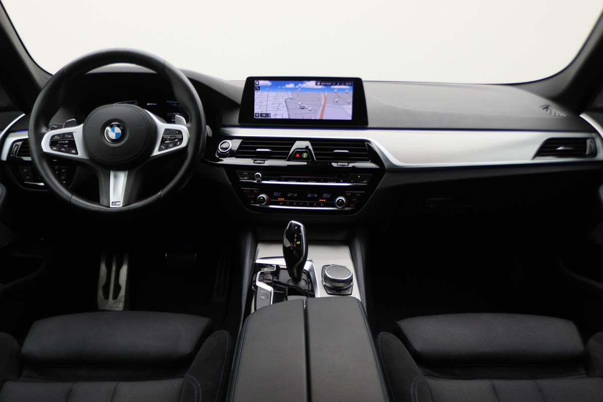 Kilometer na kilometer, bocht na bocht levert deze BMW 5-serie de beste rijprestaties. Hij heeft een benzinemotor en een automatische transmissie. Eén blik naar binnen bewijst het al: pure klasse, onder meer dankzij het interieur. Deze BMW 5-serie heeft verwarmbare voorstoelen, voor zowel bestuurder als bijrijder. Comfortabel zitten, ook als de rit onstuimig is? Dat kan met de sportstoelen. Bij de uitrusting van deze auto horen onder meer 19 inch lichtmetalen velgen, BMW M-sportpakket, adaptieve led-koplampen, zwarte hemelbekleding, donker getint glas achter en in delen neerklapbare achterbank.