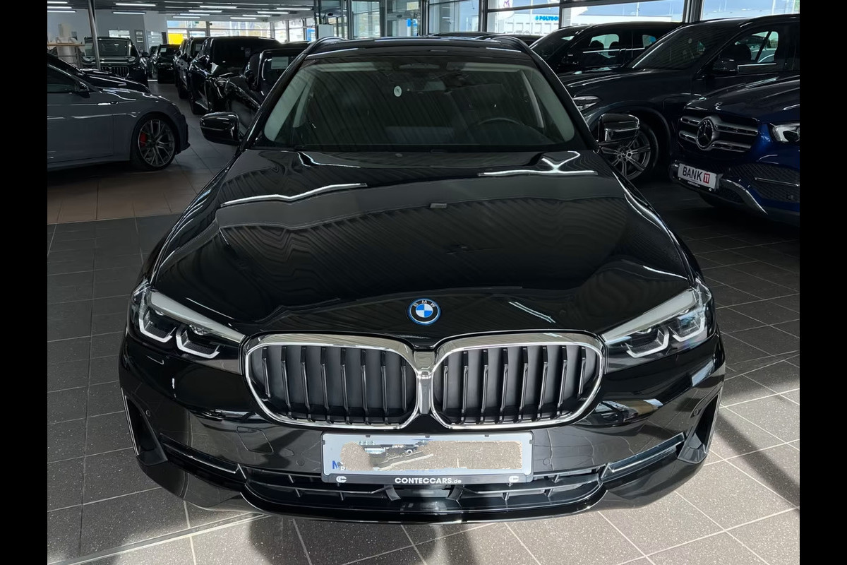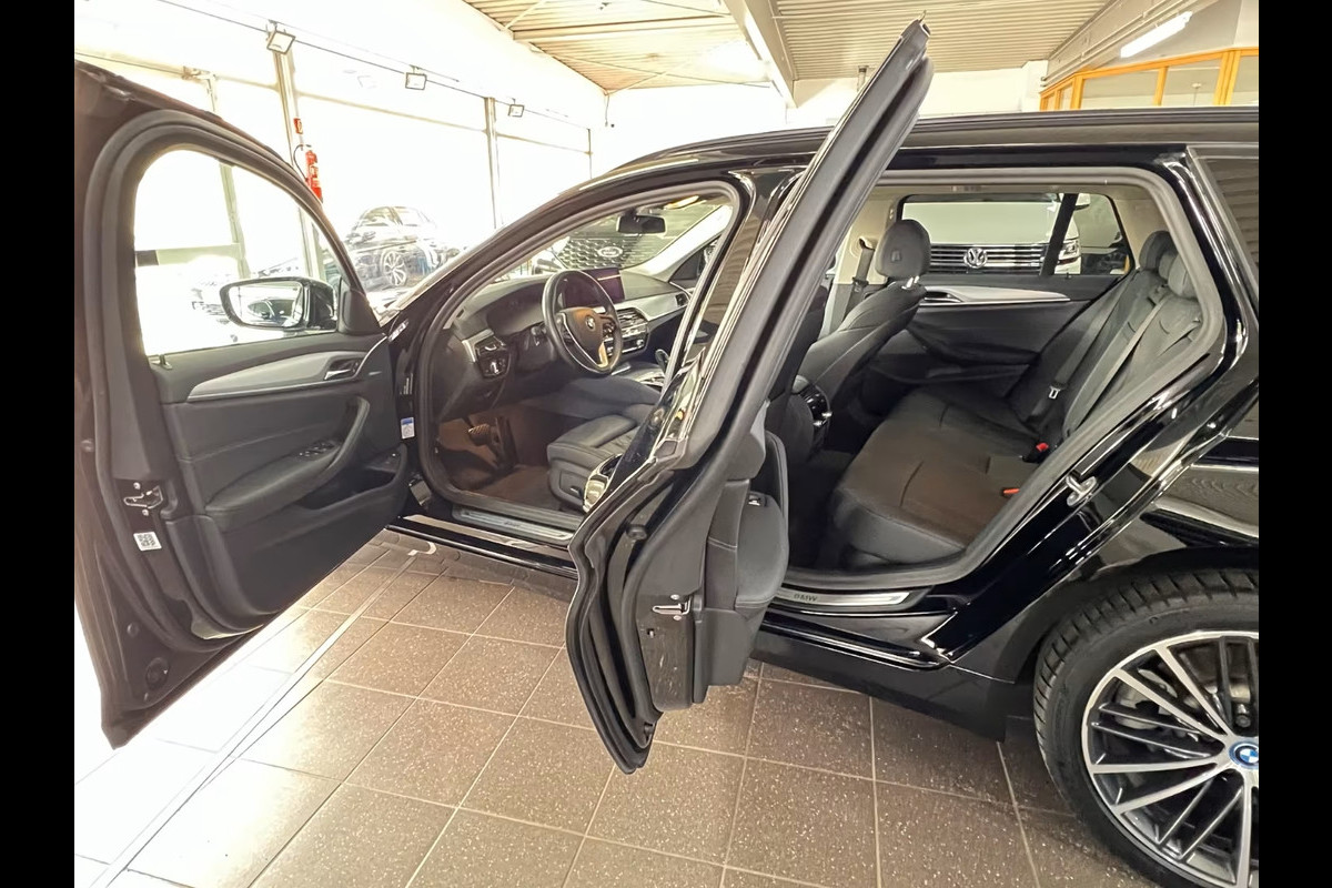 Zeer Fraai Uitgevoerde BMW 530e Touring (215kW/292pk) Hybride van de 12e maand 2022 met Slechts 54.045km. gereden (1e EIG - Unfallfrei - Vol. Dealer Onderh.) in het Schwarz II (Lakzwart - Uni) met een Antraciet (Grijze stiksels) "Sensatec" Vol-Leder Interieur (Sportstoelen) die o.a. is voorzien van: Shadow-Line hoogglans, Elektrisch verstelbare - verwarmde & inklapbare buitenspiegels, alle spiegels met automatische dimfunctie, Zwarte dakrails, Automatische klimaatregeling met 4 zones en automatische luchtcirculatie, Verwarmde voorstoelen, PDC Voor & Achter incl. Parkeer-assistent & Achteruitrijcamera, Driving Assistent Professional met o.a. Rijstrookwissel-assistent / Waarschuwing voor spookrijden / Snelheidslimietweergave / Adaptieve Cruise Control met Stop&Go-functie / Waarschuwing voor frontale botsingen / Verkeersbordherkenning met snelheidslimiet-assistentie / Kruispunt-assistentie / Assistentie bij kruisend verkeer / File-assistentie / Uitwijkstuur-assistentie / Verkeerslichtherkenning / Actieve rijstrook-assistentie / Botsingspreventie van achteren / Rijstrookwissel waarschuwingssysteem, HiFi-luidsprekersysteem, Draadloos laadstation voor smartphones, 19-inch lichtmetalen velgen in V-spaak 635 met banden 245/40R19, electr. Bed. Glazen Panoramadak, Parkeerassistentie-pakket met o.a. Parkeersensoren aan de zijkant / Achteruitrijcamera / Achteruitrijassistentie met noodremfunctie (Actieve PDC), Zonwerend glas incl. Privacy Glas vanaf de B-Style, Smartphone-integratie (Apple CarPlay en Android Auto), Servicesysteem: Remote Services / Concierge Services & Real Time Traffic Information (RTTI), BMW Live Cockpit Professional, electr. bediening van de achterklep, Multifunctioneel Lederen Sportstuur, electr. verstelbare Voorstoelen, etc, etc....