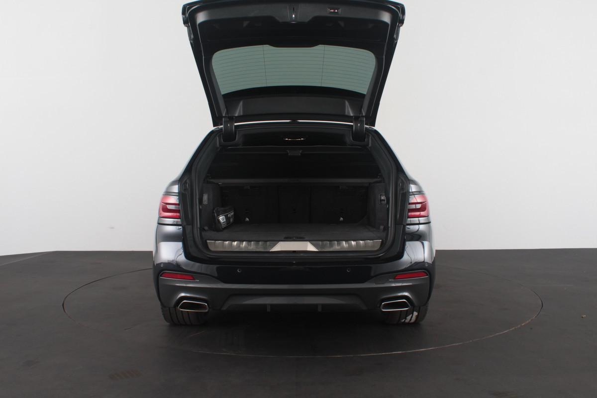 De BMW is uitgevoerd in de stijlvolle kleur Carbonschwarz Metallic en beschikt over een sportieve uitstraling dankzij het M Sport pakket, Shadow Line hoogglans zwarte accenten, zwarte dakrails en de sportieve details van het exterieur.