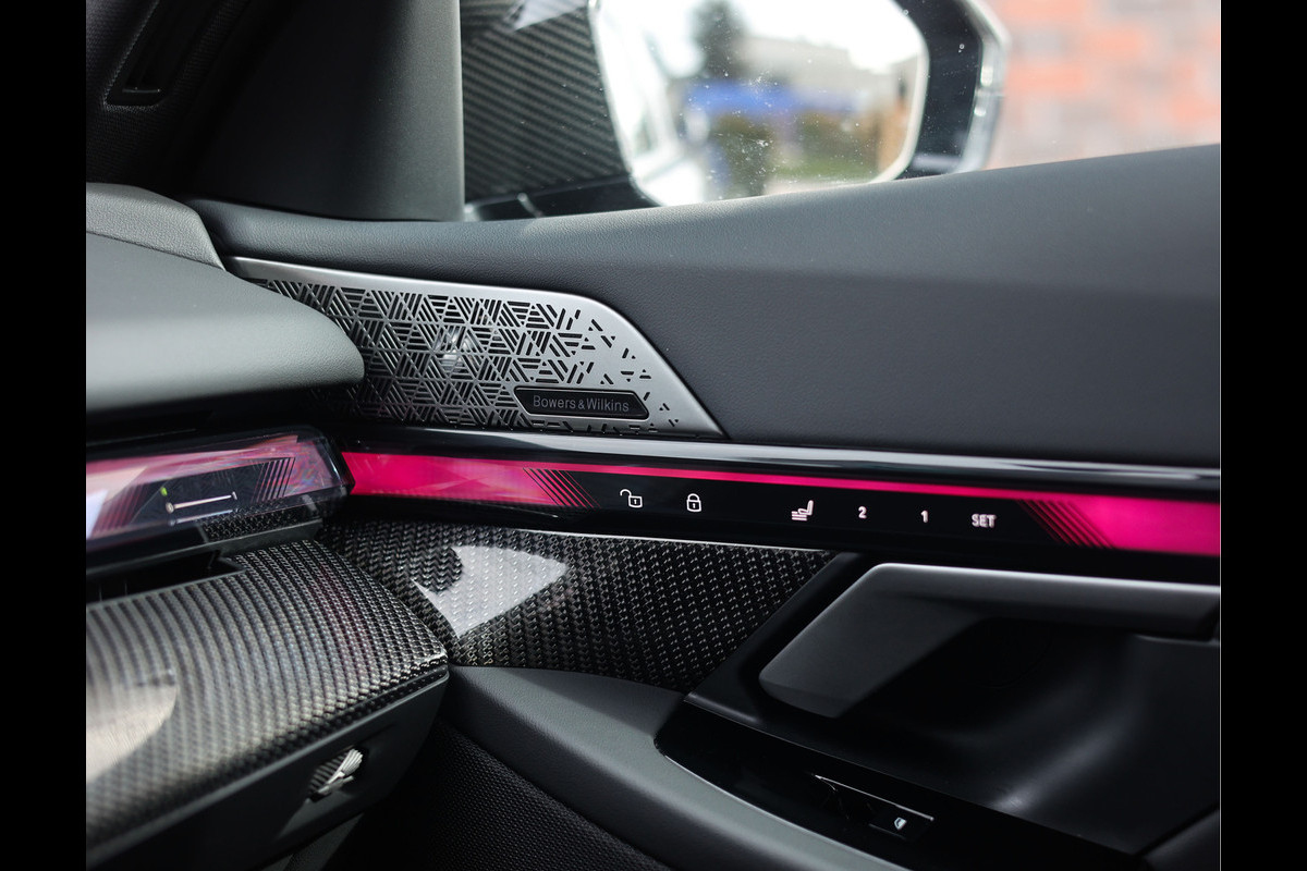 In het interieur vinden we zwart Merino leder, M Multifunctionele sportstoelen met verwarming en ventilatie en sportieve carbon interieurlijsten. Verder is het interieur afgewerkt met aluminium speakers van Bowers & Wilkins en een groot glazen panoramadak.