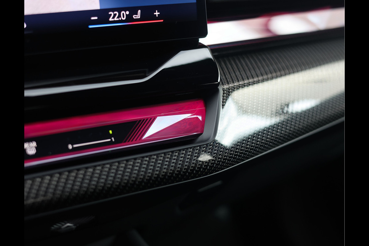 Het exterieur is uitgevoerd in Saffierzwart metallic, wat samen met de hoogglans zwarte details van het M Sportpakket Pro en de 21” velgen met rode M remklauwen zorgt voor een stoere en sportieve uitstraling. Om zijn uitstraling extra te versterken hebben wij dit exemplaar uitgerust met het volledige M Performance pakket!