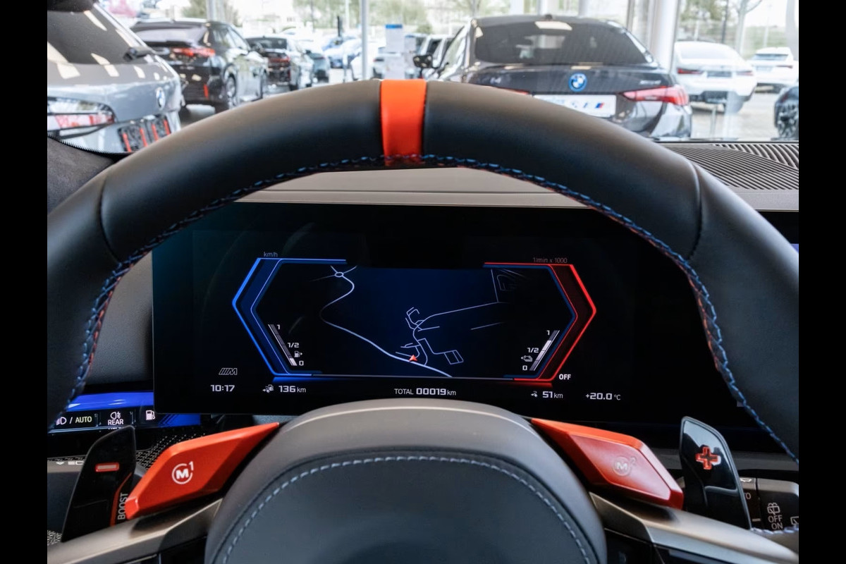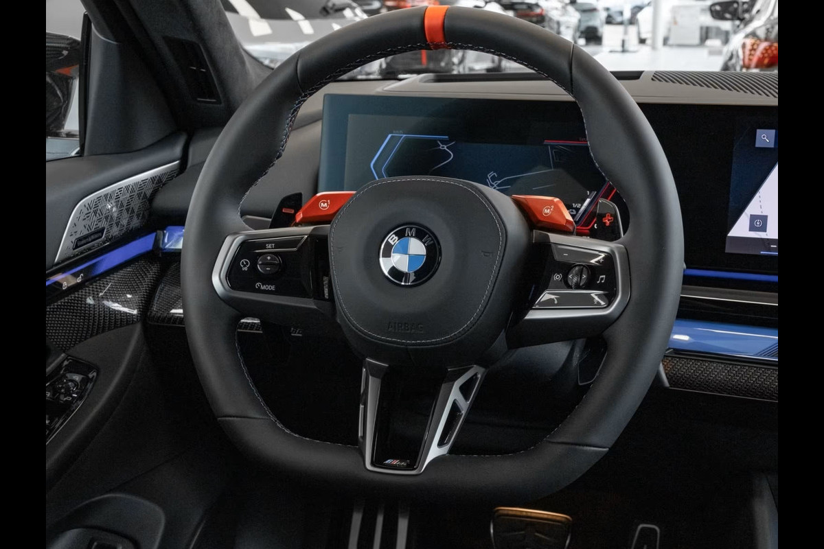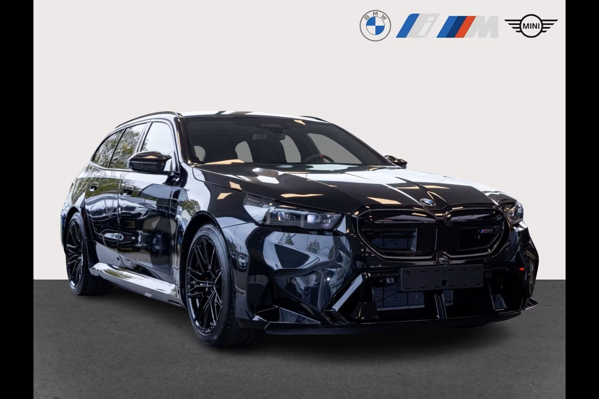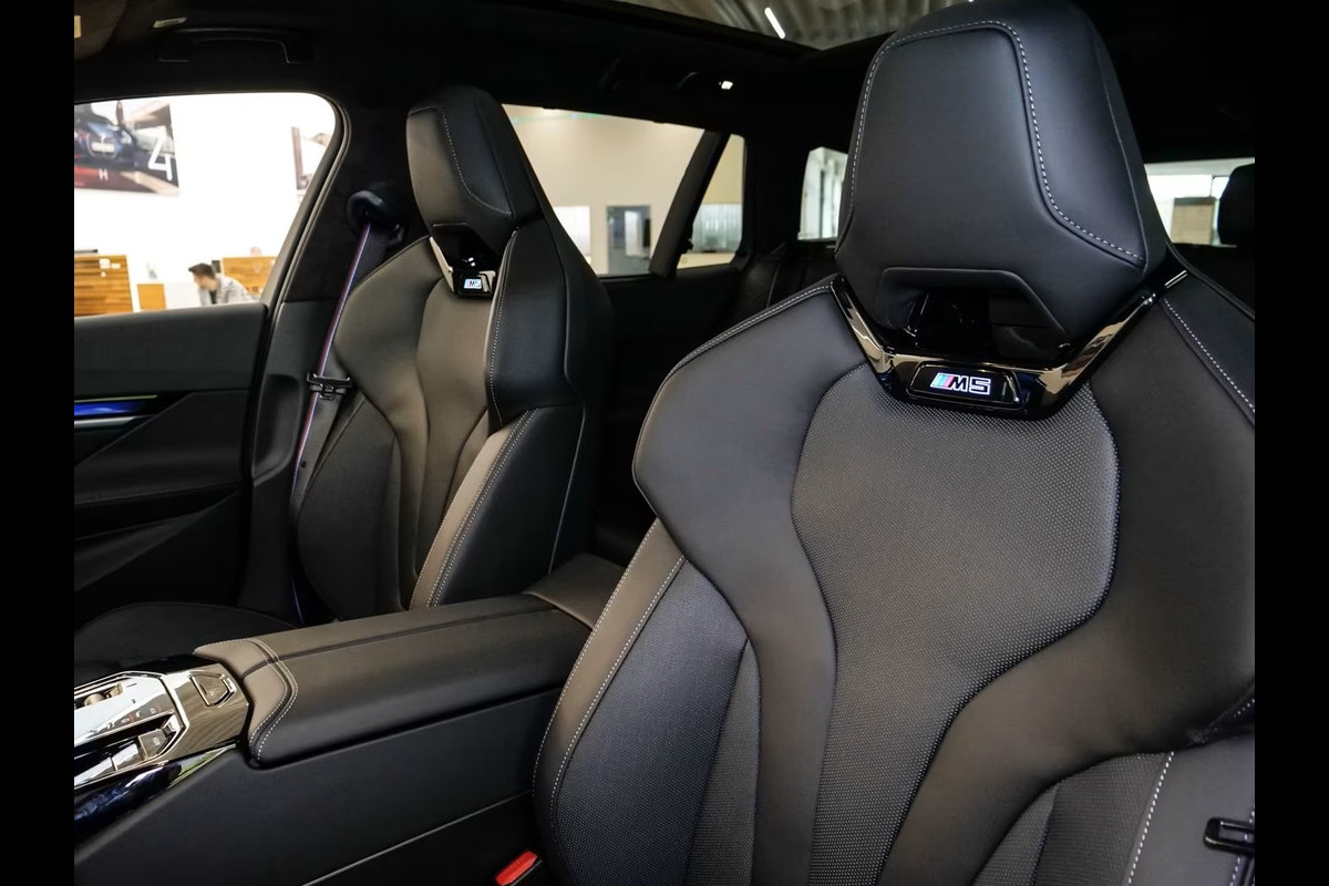 UNIEK! BMW M5 Touring M-DRIVER PACKAGE (535kW / 728pk) van 09-2025 met origineel Slechts 6.925km. gereden (Ex BMW-AG - UNFALLFREI) in het Saphire Schwarz Metallic met een Schwarz "Merino" Vol-Leder M-SPORT Interieur (M-Multifunctionele Sportstoelen) die o.a. is uitgerust met de onderstaande opties & accessoires: Remsysteem: Compound - M-remsysteem (rode remklauwen), M Drive Professional, Electr. Bed. van de achterklep, Zonwerend glas incl. Privacy Glas vanaf de B-style, BMW Iconic Glow Exterieurpakket, Comfortpakket, ConnectedDrive Services (abonnement vereist), ConnectedPackage Professional (abonnement vereist), M Driver Package (305 km/h), BMW IconicSounds Electric, Snel laden via AC, M Carbon buitenspiegelkappen, Electr. uitklapbare Trekhaak (draaibare kogelkop), Driving-Assistentie Professional, Noodoproepsysteem, Parkeer-assistent Professional, Achteruitrijcamera, Rijstrook- & Rijstrookwissel waarschuwing, TeleServices, BMW Individual High-Gloss Shadow Line uitgebreid, BMW Individual Shadow Line koplampen, Hemelbekleding Alcantara / Antraciet, Adaptieve Cruise Control, Actieve stoel Ventilatie (voor), Sfeerverlichting, BMW Live Cockpit Professional, Parkeer-assistent met zelfsturend systeem, Rijassistentiesystemen: Zijwaartse parkeerhulp / Parkeer-assistent / Achteruitrij-assistentie, Inductieve laadtray voor smartphone (draadloos opladen), keyless entry, Automatische klimaatregeling met 4 zones en automatische luchtcirculatie, Lendesteunen voor, Verwarmd Multifunctioneel M-Techniek Lederen stuurwiel, M multifunctionele voorstoelen, M veiligheidsgordels, Digitale radio-ontvangst (DAB+), Achteruitrijcamera (Top View), Geïntegreerde stuurbekrachtiging - actieve besturing, Elektrisch verstelbare & verwarmde voorstoelen (met geheugen), Verwarmde achterstoelen, Zonneschermen op de achterruiten, Bowers & Wilkins geluidssysteem, Surround View camerasysteem, Reis- en comfortsysteem, De-activering passagiersairbag, Diefstalalarm met interieurbewaking, Knie-airbag bestuurder, Hoofdairbag systeem voor & achter, Bandenspanningscontrolesysteem, LED-koplampen met adaptieve lichtverdeling, Automatische transmissie - met Steptronic en Drivelogic (8 versnellingen), Interieurafwerking: M Donkerzilver / Koolstofvezel met hoogglans zilveren draden, Binnencamera, Laadkabel (5,0 m) met Type 2-connector (Modus 3, 22 kW),