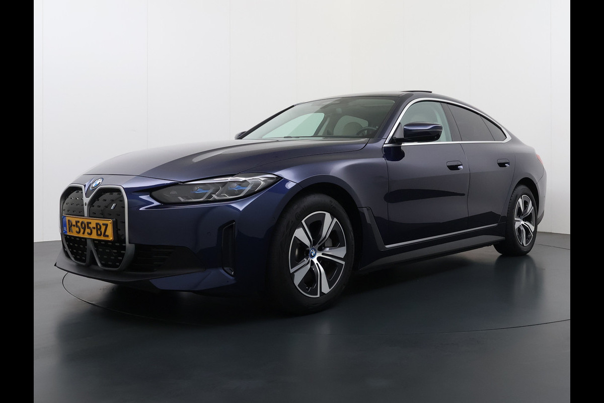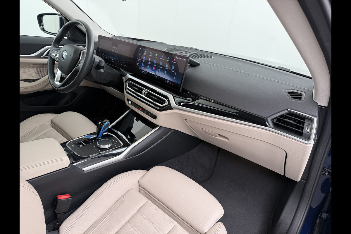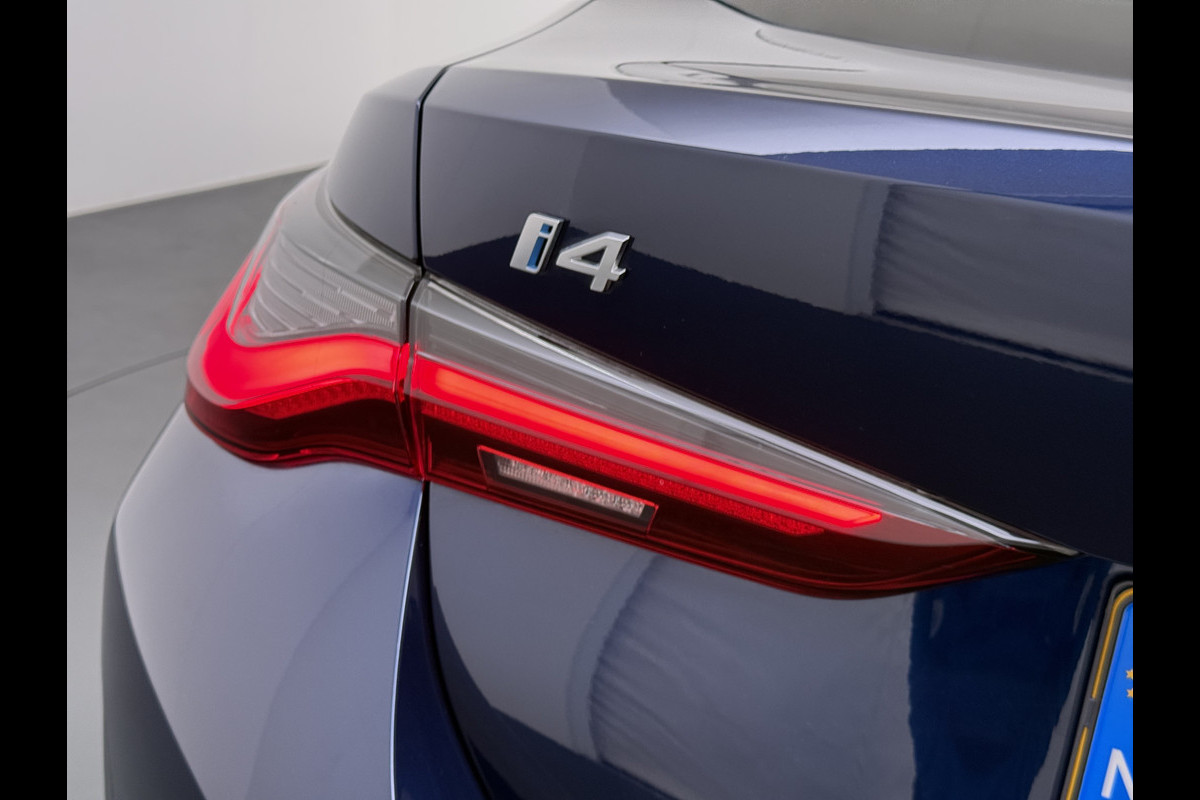 BMW i4 eDrive40 340pk 84kWh Pano-Dak/Hefdak Leer SportSt+Leer+(Stuur+)Verwarmd 360°Camera SOH 99% Adaptive-Cruise+s&go High Executive P Semi-Autopilot Drive-Assist-pro Active-Guard-Plus Elektr.Achterklep Draadl-Lader BAS ESP BMW Individual interieurlijsten Pianolak schwarz BMW Individual Exterieur Line Aluminium satiniert BMW Copilot-pack Dodehoekdetectie/correctie, Kruisend-verkeer-Detectie, rijstrooksensor met correctie, rondomzicht camera, uitwijk assistent) 0-100 5,6 sec. 1600kg trekvermogen! € 73.000 nieuw