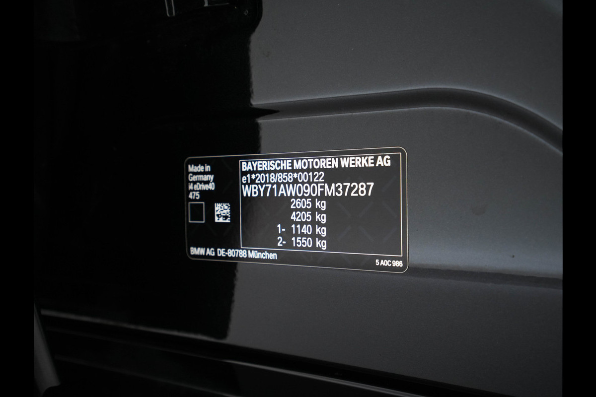 BMW i4 eDrive40 High Executive 84 kWh M-Sportpack [ 3-Fase-11kW ] {SOH-93%} (INCL.BTW) Aut *LEATHER | HEAD UP | FULL-LED | HIFI-SOUND | CRUISE | WIDESCREEN-COCKPIT | DAB+ | CAMERA | AMBIENTLIGHT | CARPLAY | HEATED-SPORTSEATS | PRIVACY-GLASS | 19''ALU*