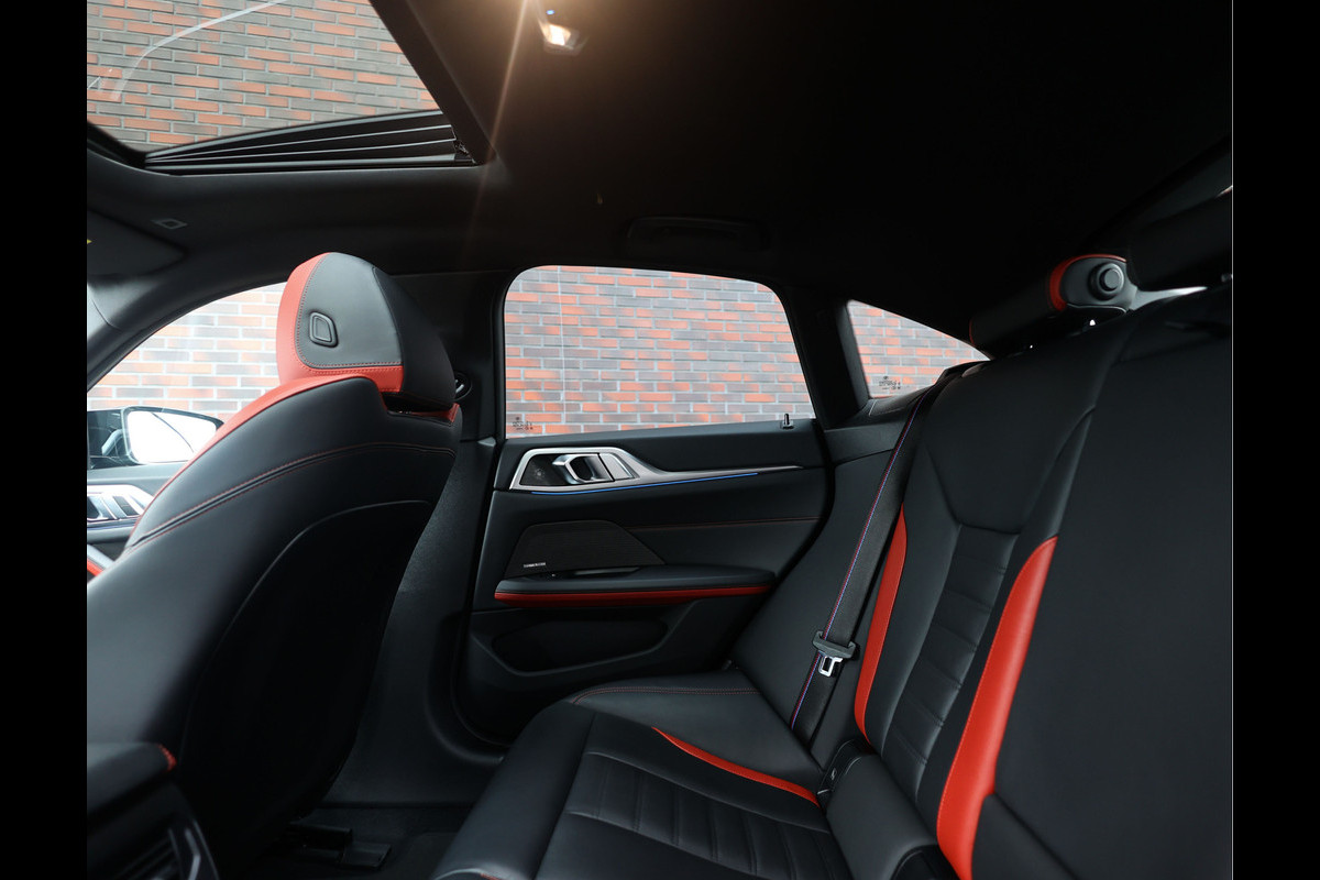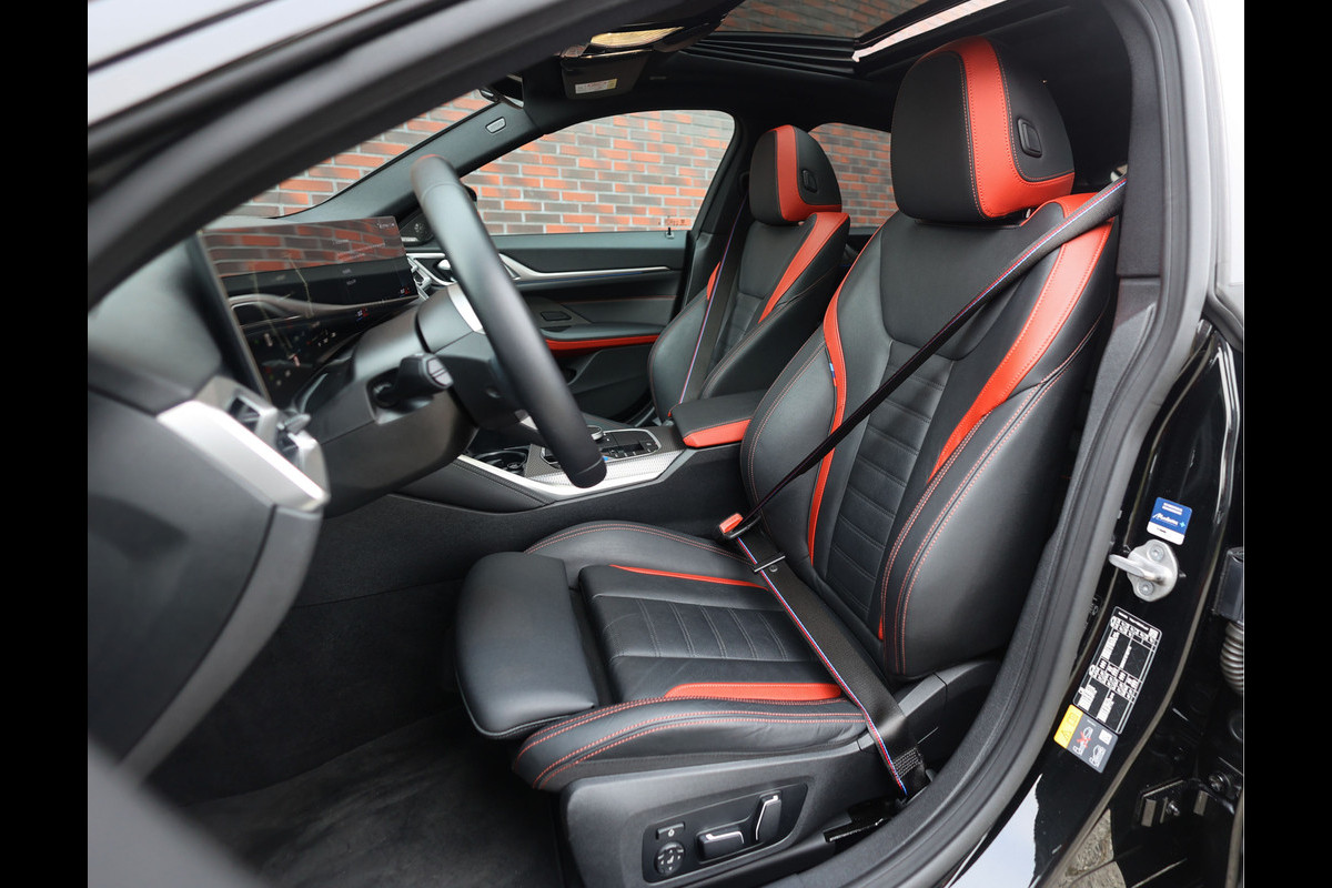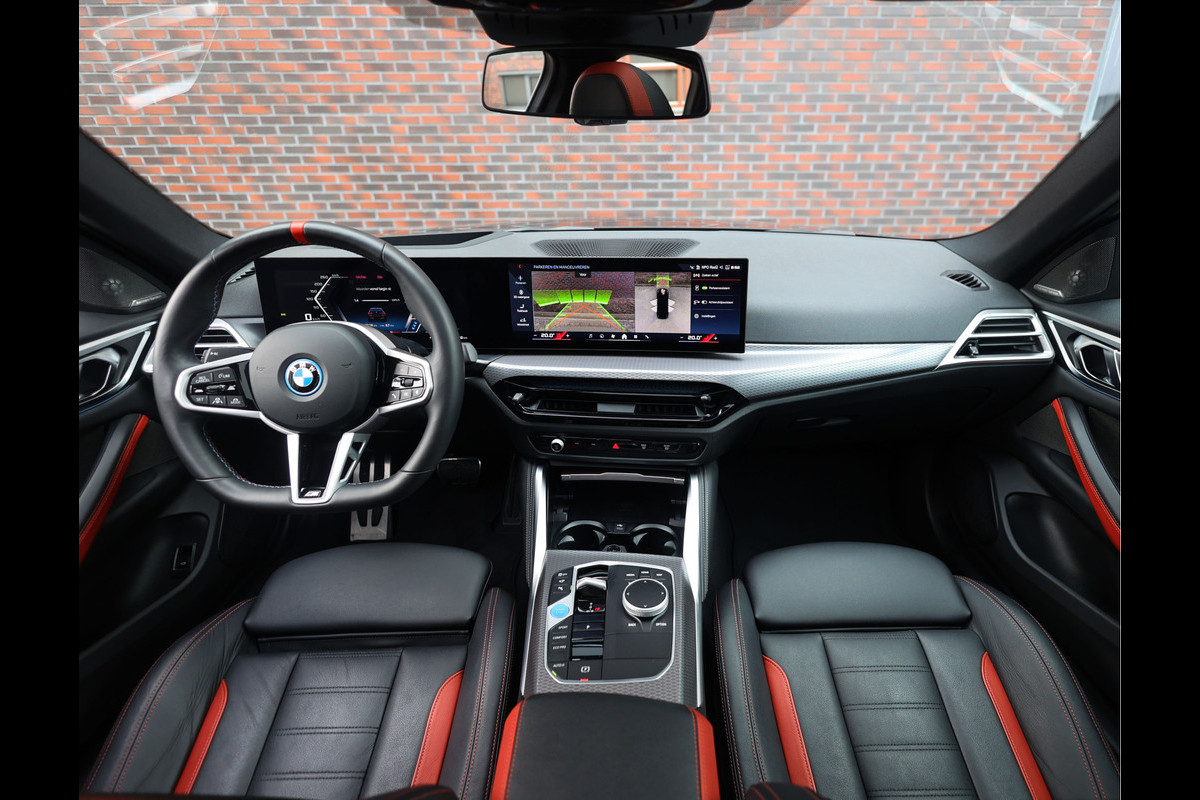 Binnen in de i4 zet het M-karakter zich voort. De cockpit is volledig bekleed in zwart Vernasca leder met mooie rode accenten, M gordels, verlichte M instaplijsten en een sportstuur met verwarming. Het elektrische panoramadak laat het daglicht prachtig naar binnen vallen en versterkt dat luxe, open interieur waar BMW zo bekend om staat. Het Harman Kardon audiosysteem zorgt onderweg voor een rijke, volle sound die u zelfs bij rustige ritten een glimlach bezorgt. En omdat elke zitplaats verwarmd is, geniet iedereen aan boord van datzelfde comfort.