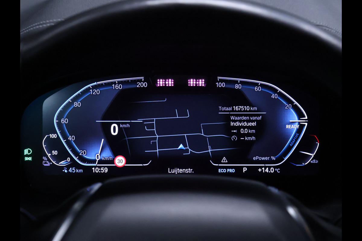 Met het digitale dashboard kunt u de cockpit-interface naar uw voorkeur instellen. Elk van de vier camera's op deze auto draagt bij aan het creëren van een onbelemmerd uitzicht van 360 graden rondom de auto. Adaptive cruise control houdt de ingestelde snelheid vast en houdt automatisch afstand tot uw voorligger. Slimme spraakbesturing herkent gesproken opdrachten en voert ze uit. De conditie van deze auto is 24/7 inzichtelijk dankzij Connected Services. Met premium audiosysteem, navigatiesysteem met harde schijf, WIFI-hotspot, achteropkomend verkeer waarschuwing, automatische airconditioning en draadloos opladen is deze BMW helemaal compleet.
