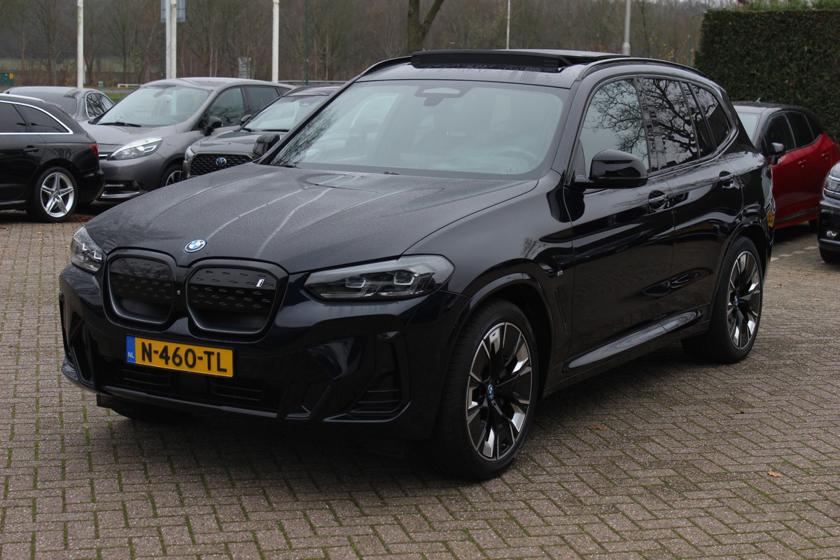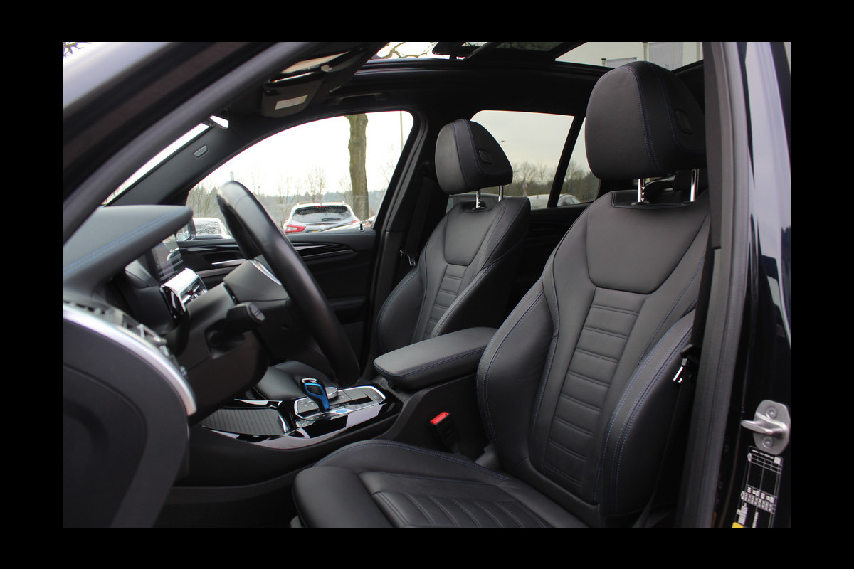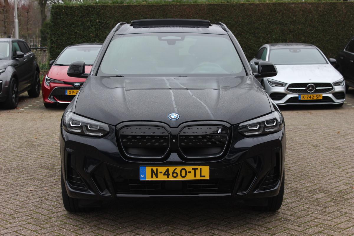BMW iX3 High Executive 80 kWh / SoH 94.7% / Trekhaak / Panoramadak / 360Camera / Head-up / 20'' / Leder / Harman Kardon / Sfeerverlichting / Dodehoek / DAB / Stuur+Stoelverwarming / ACC