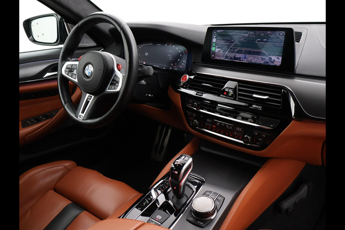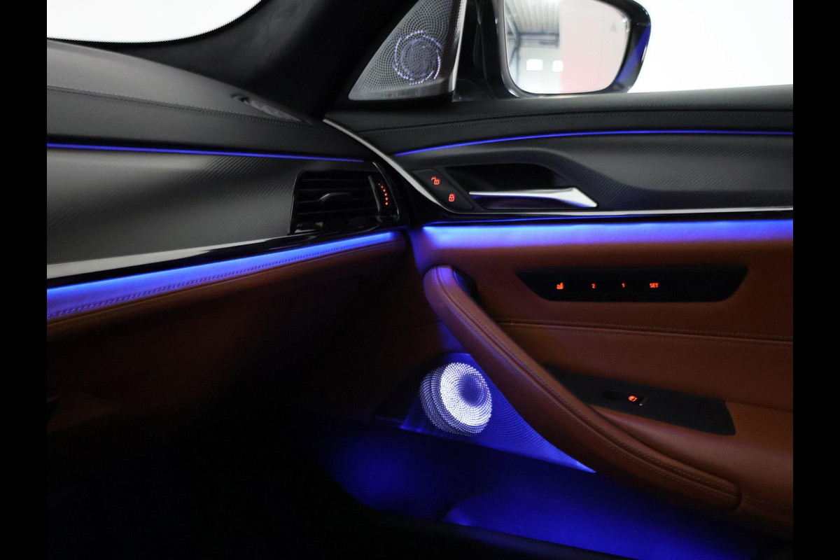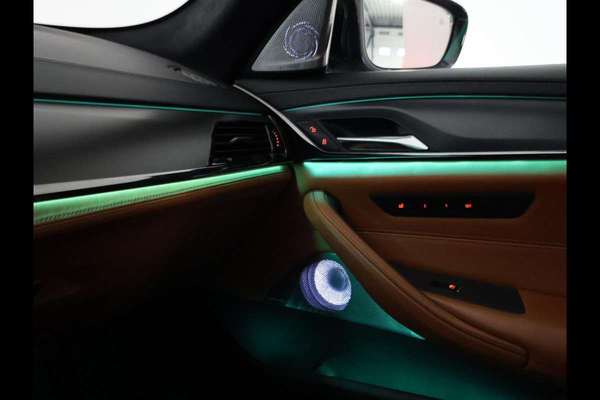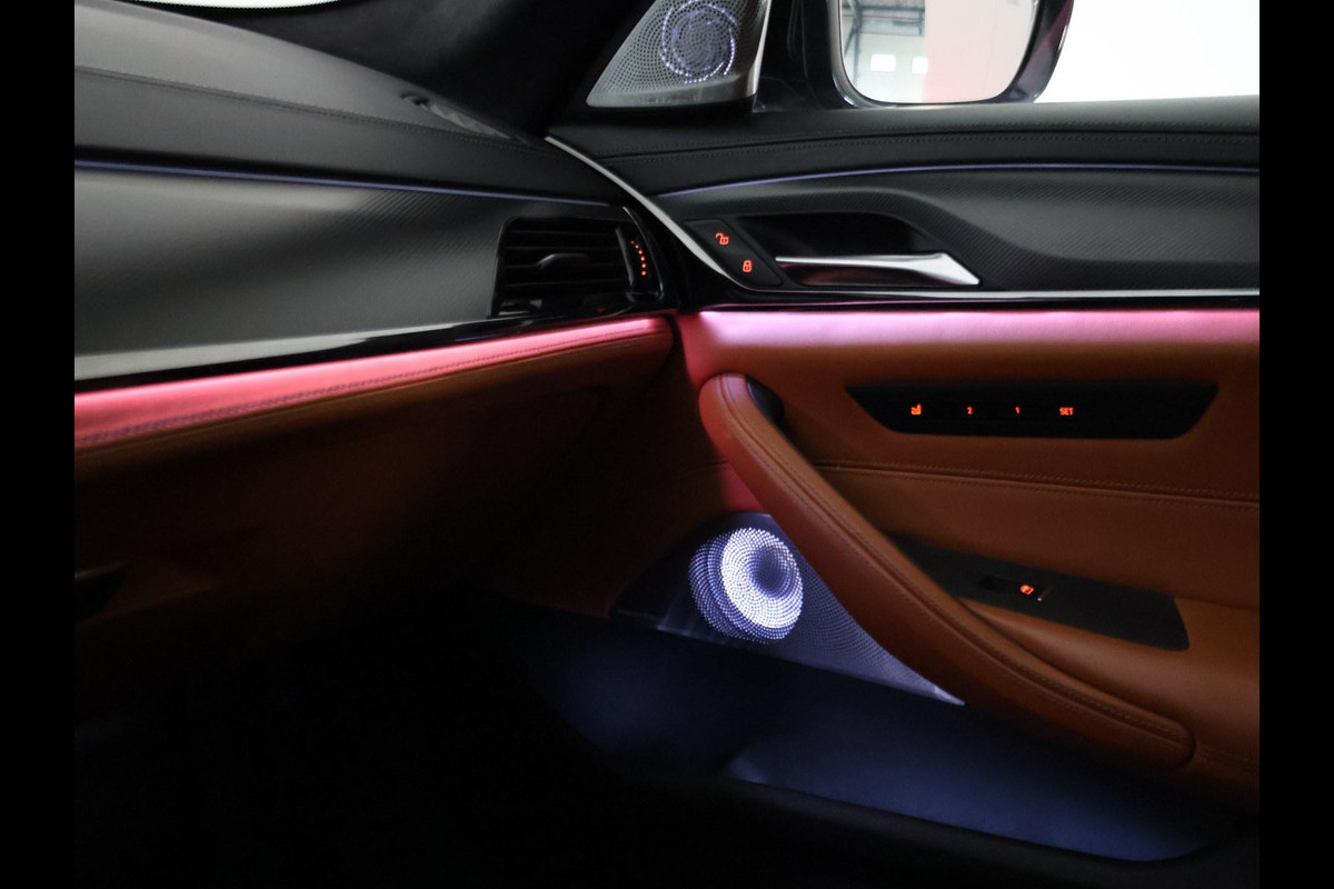 Origineel Nederlandse M5 Competition, BTW verrekenbaar, RDW nieuwprijs 206.235 euro, 4.4 V8 Bi-Turbo 625 PK automaat met vierwielaandrijving in het BlueStone metallic met Aragon Braun leder M sportinterieur met verlichte M logo's in de stoelen, Massagefunctie, Stoelventilatie, Stoelverwarming voor + achterin, Keramische ramen, Bowers & Wilkins High End Audio, M-sportuitlaat, Rear Entertainment originele schermen achterin, Laser LED koplampen, Zonneschermen achterin, 360 graden surround view camerasysteem, Driving Assistant Plus met adaptive cruise control en actieve lijnassistentie, Draadloze Apple Carplay / Android Auto, Sfeerverlichting met verschillende kleuren, Soft close sluitbekrachtiging portieren, Carbon dak, Head-up display, 4-zone climate control, Stuurwielverwarming, Geïntegreerde universele afstandsbediening, M-veiligheidsgordels, Ambient Air pakket, Draadloze telefoonlader, BMW gebarenbesturing.