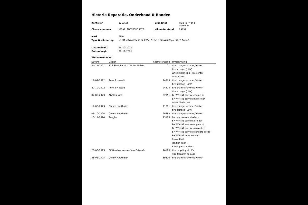 Te koop: BMW X1 xDrive25e – Plug-in Hybrid – Automaat – 162 kW – Leder Zwart – 99.191 km – Perfect onderhouden – CarPlay – Camera – LED – Stoelverwarming – Cruise Control – Eerste eigenaar