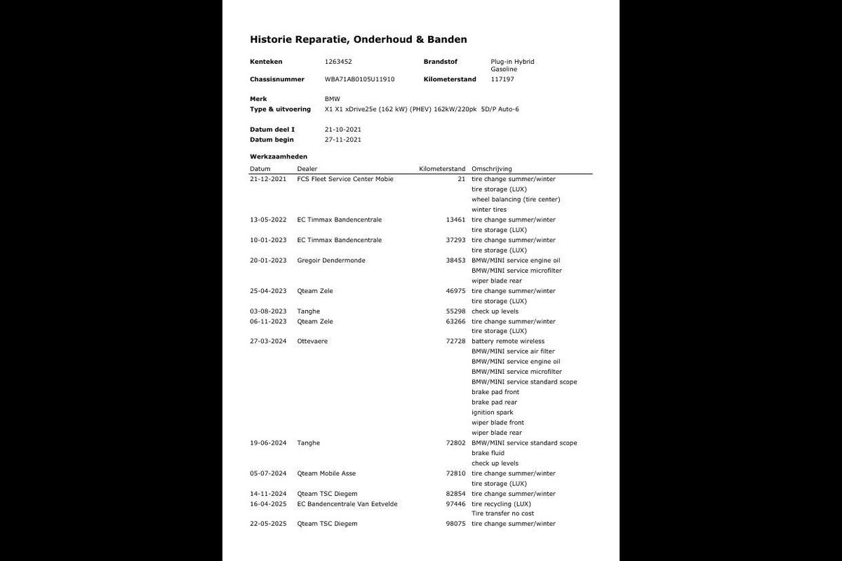 Te koop: BMW X1 xDrive25e – Plug-in Hybrid – Automaat – 162 kW – Leder Zwart – 117.197 km – Perfect onderhouden – CarPlay – Camera – LED – Stoelverwarming – Cruise Control – Eerste eigenaar
