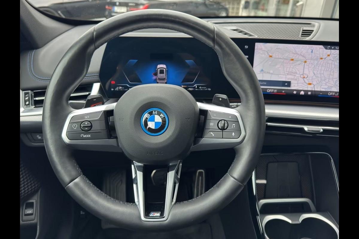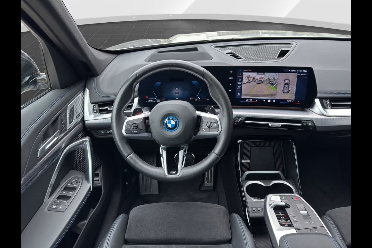 Super Fraaie BMW X1 xDrive30e M-SPORT Pro (240kW/326pk) van 08-2024 met 45.812km. gereden (1e Eig - Unfallfrei - Vol. BMW Onderh.) in het Space Silber Metallic met een Schwarz Leder / Alcantara M-SPORT Interieur (M-SPORTSTOELEN) die o.a. is uitgerust met: 20-inch L.M. Velgen in "M-multispaak 869", Opbergvak voor draadloos Tel. laden, Active Guard, Adaptieve LED-koplampen, electr. uitklapbare Trekhaak, Zwarte buitenspiegelkappen, BMW Head-Up Display, BMW IconicSounds Electric, BMW Live Cockpit Professional, M Sport remmen (gelakte remklauwen - hoogglans rood), Driving-Assistent Professional, Rijassistentiesysteem: Parkeerhulp / Waarschuwing voor rijden tegen de rijrichting in / Botsingspreventie van achteren / Parkeer-assistent / Hill Start-monitoring bij parkeren / Dwarsverkeers-assistentie / Achteruitrij-assistentie / Achteruitrijhulp met noodremfunctie (Active (PDC) / Snelheidslimietweergave / Rijstrookwissel-assistent, Grootlicht-assistent, Bagageruimtenet, Actieve cruisecontrol met Stop&Go-functie, Harman & Kardon HiFi-luidsprekersysteem, Binnen- en buitenspiegelpakket, Interieurafwerking in "M" Aluminium Hexacube-verlichting, Automatisch dimmende binnenspiegel, Innovatiepakket, Instrumentenpaneel met Leder bekleed, Professionele laadkabel (Modus 3) voor openbaar laden, Verwarmd stuurwiel, "M" achterspoiler, "M" hoogglans Shadow-Line uitgebreid, "M" Shadow Line-koplampen, "M" veiligheidsgordels, "M" Sport in- & exterieurkenmerken, "M" Sport Pro-pakket, "M" Sportstoelen voor, Noodoproep- en assistentiesysteem, Olieverversingsinterval 24 maanden/30.000 km, Elektrisch bed. Glazen Panoramadak, Personalisatiesysteem (Persoonlijke eSIM), Achteruitrijcamera,