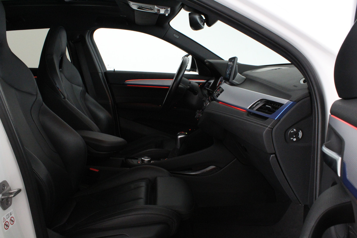 Het M Sport pakket geeft deze X2 een extra dynamisch karakter. De 19 inch lichtmetalen velgen, de Shadow-Line afwerking en de sportieve lijnen zorgen voor een moderne en krachtige uitstraling. Het interieur sluit hier naadloos op aan met luxe lederen bekleding en elektrisch verstelbare stoelen met geheugenfunctie, zodat u altijd direct uw ideale zitpositie heeft. Het panoramische schuifdak zorgt voor veel licht en een ruimtelijk gevoel, wat elke rit nog aangenamer maakt.