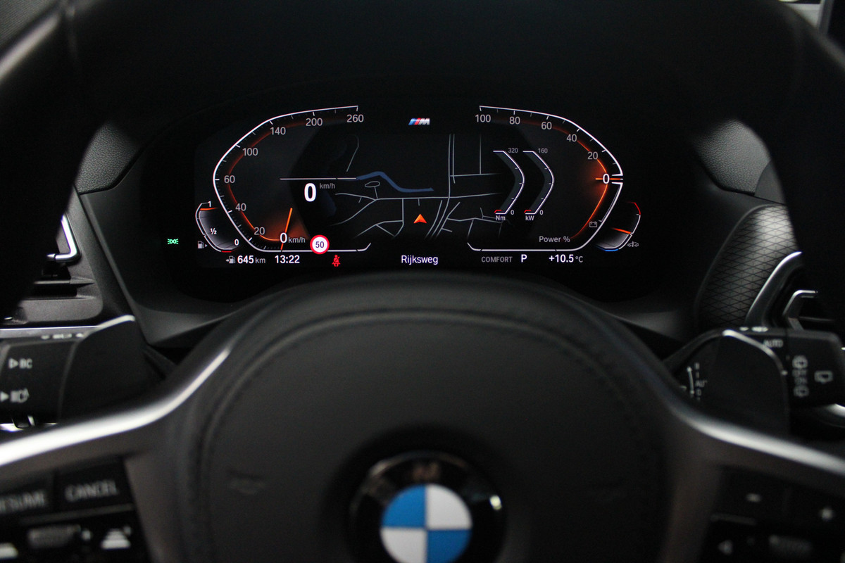 Dankzij het digitale dashboard leest u alle benodigde info gemakkelijk en overzichtelijk af. Kom maar, kom maar, kom maar... ho! Prettig hoor, zo'n achteruitrijcamera. Adaptive cruise control is veilig en comfortabel. De snelheidsregelaar houdt automatisch afstand tot het voertuig dat voor u rijdt. Zoals u van zo'n jonge auto mag verwachten, zijn hier ook de geavanceerde remote services aanwezig. Simpelweg met een app op uw smartphone controleert u op afstand de status van de auto en bedient u diverse functies. Hoeveel gigabytes aan muziek wilt u meenemen? Met één stick in de usb-aansluiting kunt u uren en uren vooruit. Met dashboard met spraakbediening, full map navigatiesysteem, achteropkomend verkeer waarschuwing, automatische airconditioning, lederen sportstuur en DAB ontvangst is deze BMW helemaal compleet.