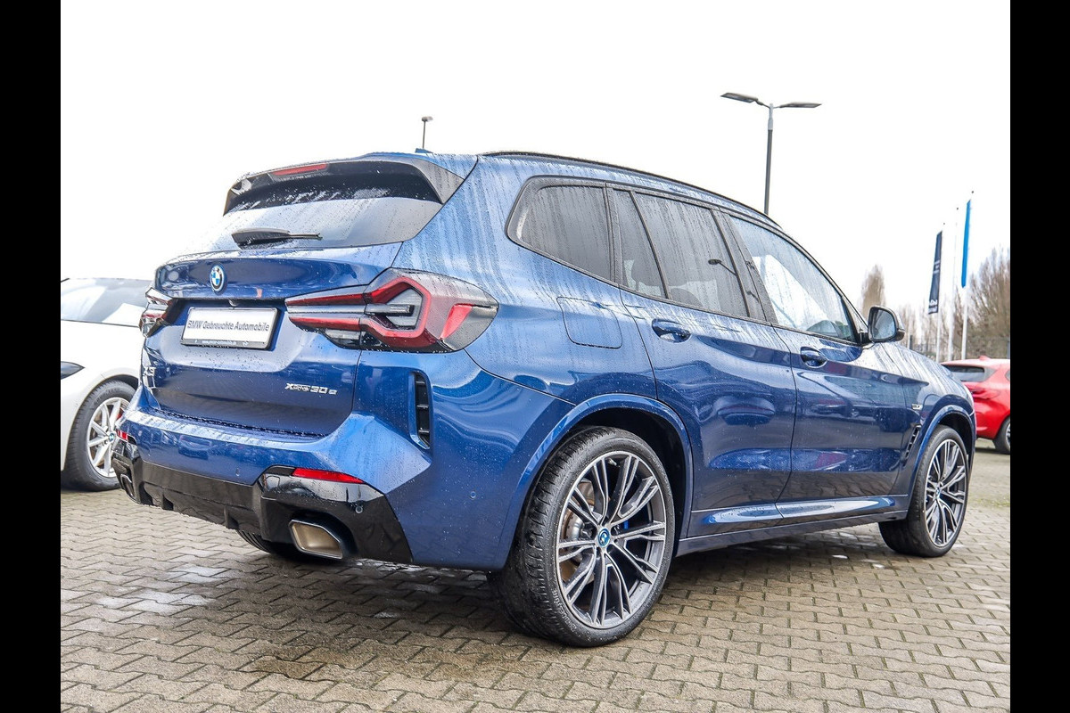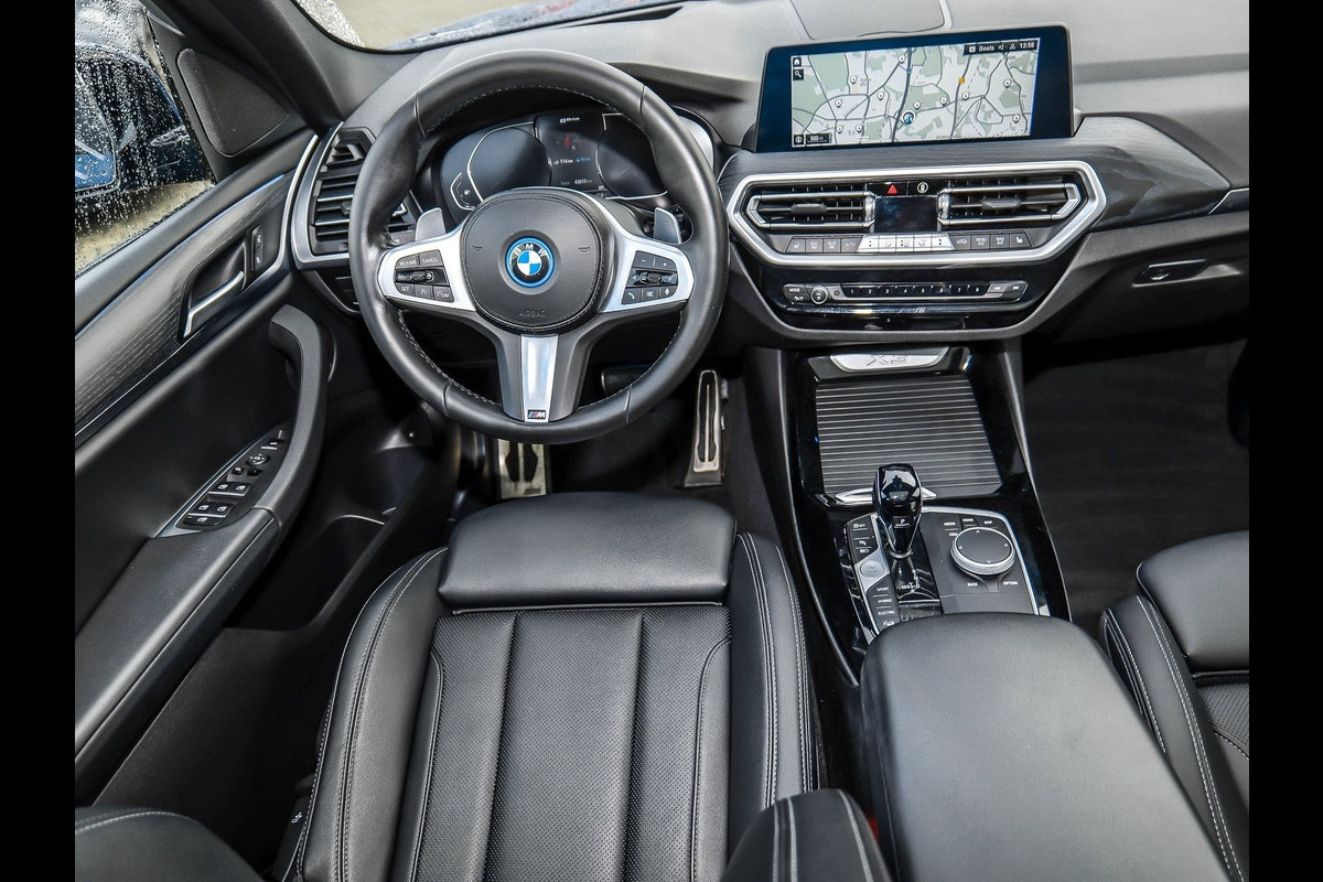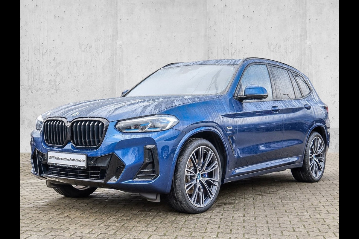 Werkelijk zeer fraai uitgevoerde BMW X3 xDrive 30e M-SPORT van 01-2022 met Slechts 43.613km. gereden (1e EIG - UNFALLFREI) in het Phytonic Blau Metallic met een Schwarz "Sensatec" Leder Interieur met Grijze Sierstiksels (SW) die o.a. is uitgerust met: xDrive Vierwielaandrijving, Standaard laadkabel (Modus 2) voor stopcontacten, Opbergpakket, ConnectedDrive Services (abonnement), ConnectedPackage Professional (abonnement), Innovatiepakket, M Aerodynamica-pakket, M Sportpakket, Remsysteem: M Sport-remmen (gelakte remklauwen), Performance Control, Sportautomaat Steptronic-8, Variabele sportstuurinrichting, Actieve voetgangersbescherming, Deactivering passagiersairbag, Driving -Assistent, Grootlicht-assistent, Binnenspiegel Automatisch dimmend, Bandenspannings-controle, Laserkoplampen, Gevarendriehoek,