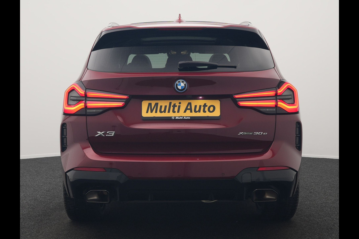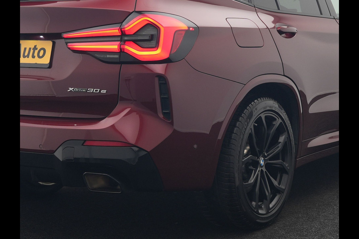 BMW X3 xDrive30e M Sport Plug In Hybrid 293pk Dealer O.H. PHEV | Trekhaak Af Fabriek | Panodak | Head Up | 360 Camera | Laser LED | 20"L.M | Lederen Sportstoelen Ventilatie & Memory | Sfeerverlichting | Stoelen & Stuur Verwarmd | Aventurinrot III Metallic |
