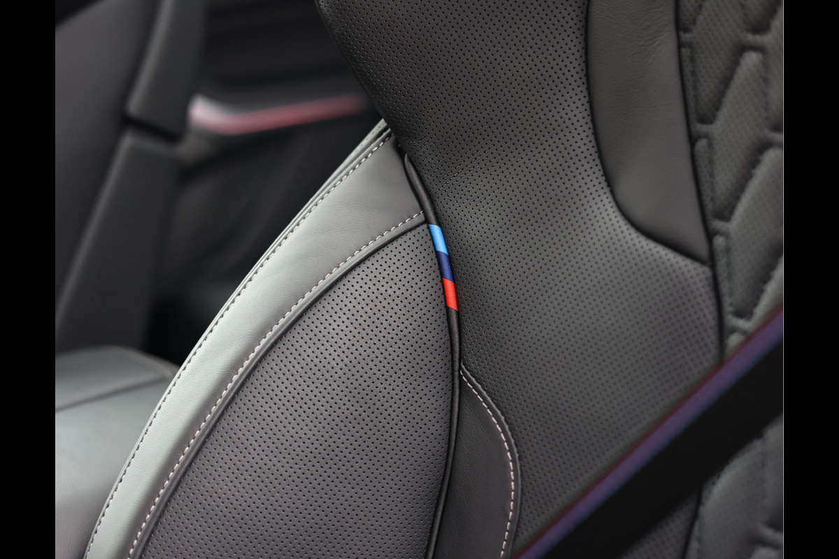 Het interieur is afgewerkt in zwart Merino leder. De M multifunctionele stoelen zijn van alle opties voorzien: verwarming, ventilatie en massagefuncties zorgen voor optimaal comfort. Tijdens de rit kunt u genieten van het Harman/Kardon geluidssysteem. De afwerking met het lederen dashboard en de Crafted Clarity glazen bedieningselementen benadrukken de aandacht voor detail die BMW kenmerkt.
