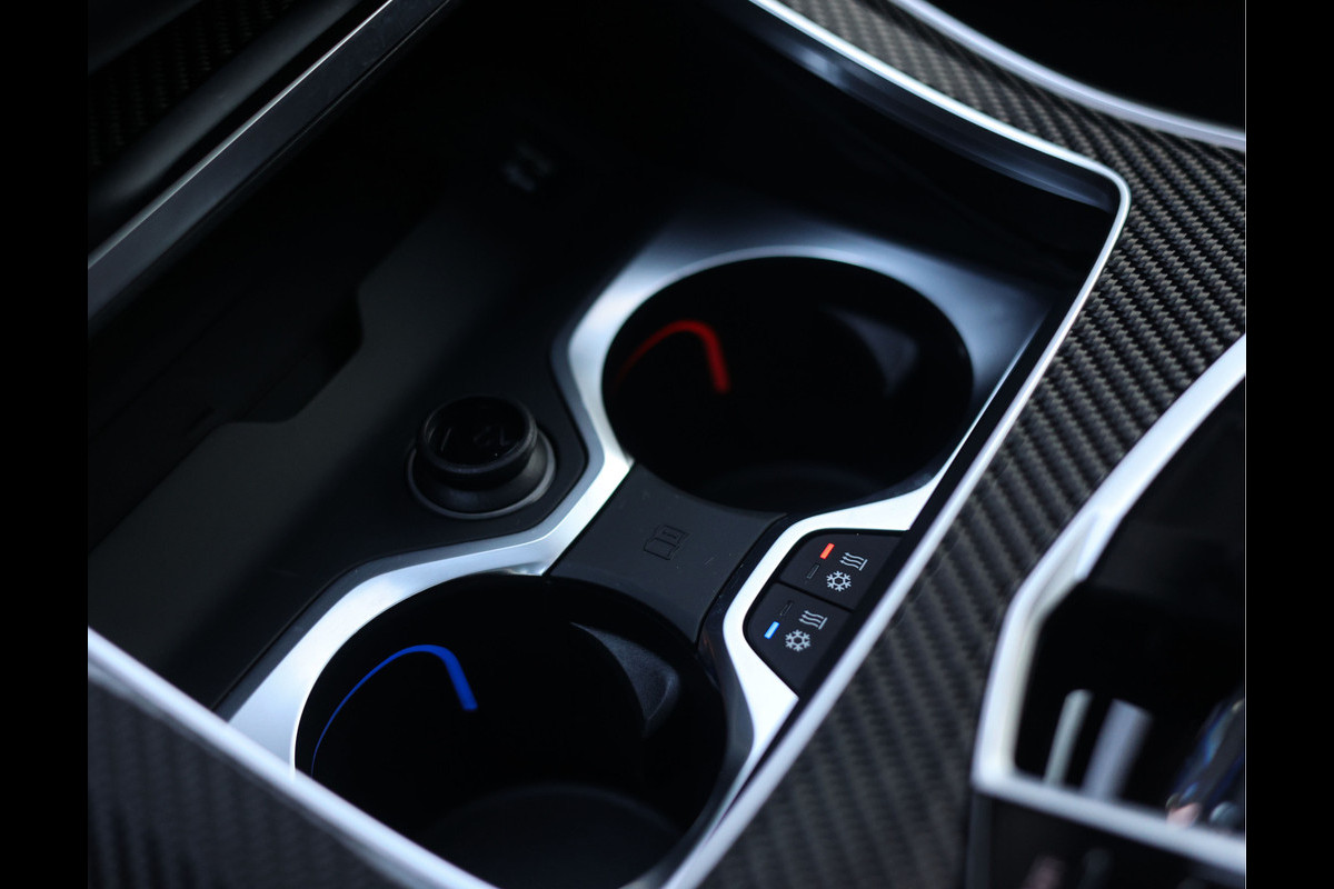 In het interieur vinden we zwart Merino lederen zetels, voorzien van verwarming, ventilatie én massagefuncties. Daarnaast zijn ook het dashboard, middenconsole en deurpanelen in leder uitgevoerd voor een extra exclusief gevoel. Het geheel wordt afgemaakt met sportieve carbon interieurlijsten, Bowers & Wilkins speakers en een donkere binnenhemel. Voor extra ambiance is dit exemplaar uitgerust met het Skylounge panoramadak dat prachtig oplicht in het donker.