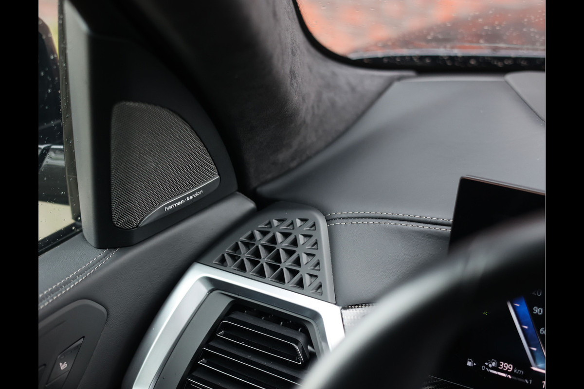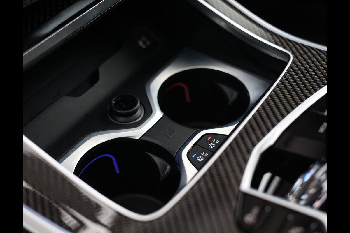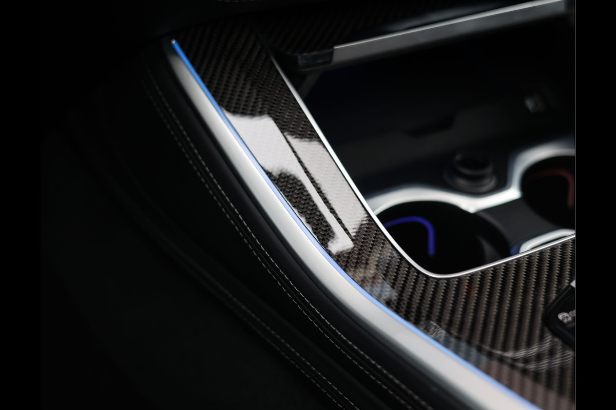 Het exterieur is uitgevoerd in Carbonzwart metallic, wat samen met het M Sport Pro pakket met hoogglans zwarte details zorgt voor een ongekende uitstraling. De sportieve velgen met daarachter rode M Sportremmen maken het plaatje compleet.