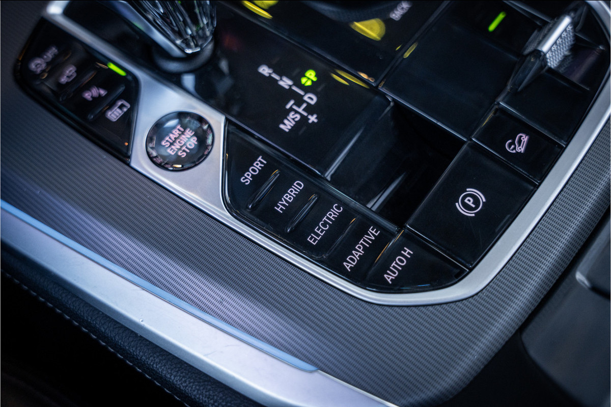De hybride aandrijflijn koppelt een efficiënte benzinemotor aan een krachtige elektromotor, wat resulteert in directe respons, vloeiende acceleraties en de mogelijkheid om korte afstand volledig elektrisch te rijden. De xDrive-vierwielaandrijving zorgt voor uitstekende grip, stabiliteit en vertrouwen, ongeacht de omstandigheden of het terrein.