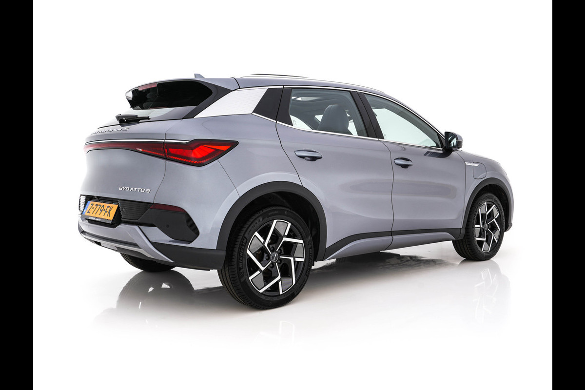 BYD ATTO 3 Comfort 60 kWh [ 3-Fase ] {SOH-92%} (INCL.BTW) *PANO | ADAPTIVE-CRUISE | LEATHER | FULL-LED | TOP-VIEW | BLIND-SPOT | HEATED-COMFORTSEATS | DIGI-COCKPIT | CARPLAY | DAB | NAVI-FULLMAP | ECC | PDC | 18''ALU*