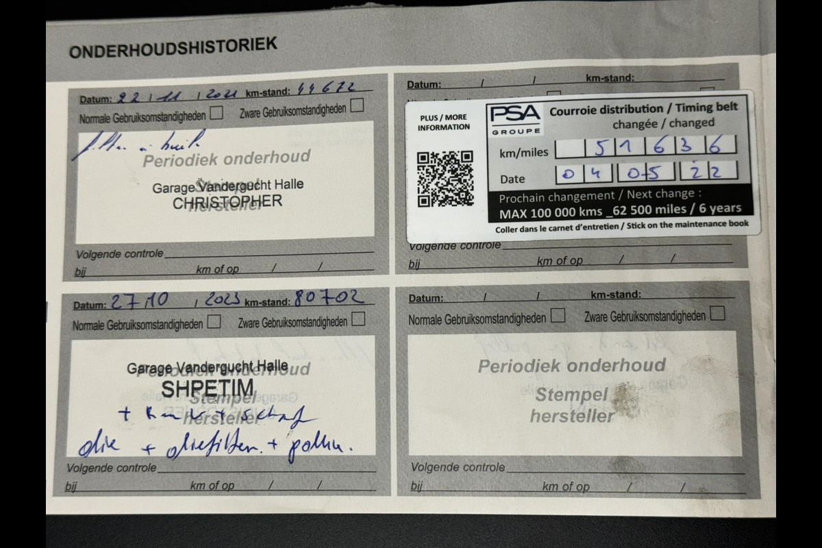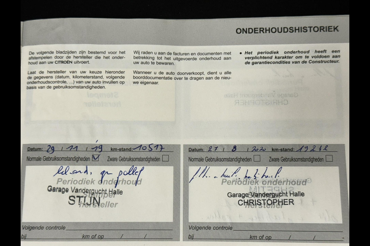 Onderhoudsboekjes: Aanwezig