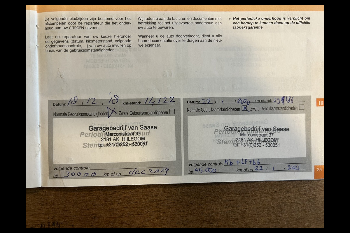 Onderhoudsboekjes: Aanwezig
