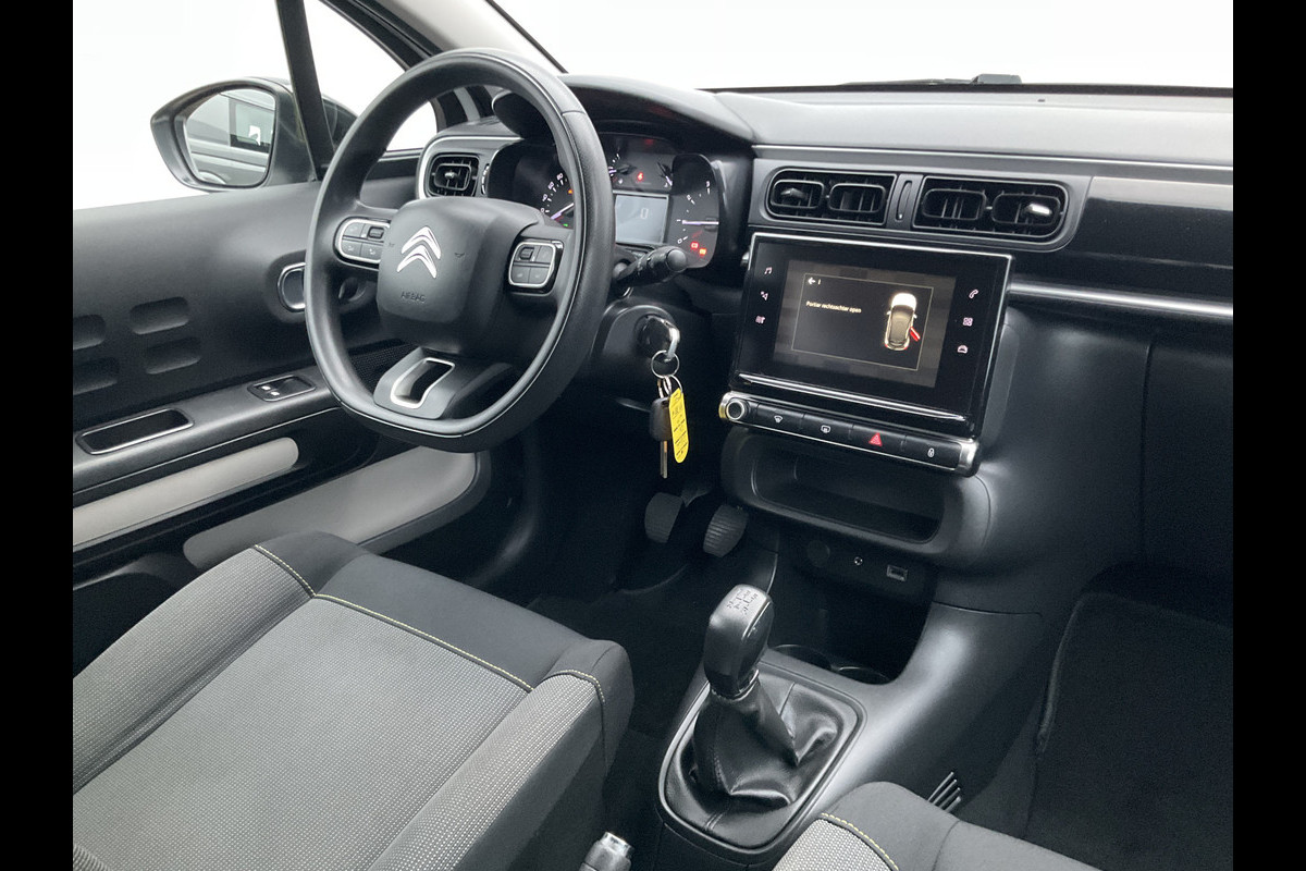 Pragmatisch en veilig als deze auto is, beschikt hij over diverse veiligheidssystemen. In het instrumentarium ziet u tijdens de rit ook de belangrijkste verkeersborden aangegeven, die de auto automatisch voor u leest. Mooi binnen de lijnen van de rijstrook blijven? Het Lane-keeping systeem helpt altijd een handje. Deze Citroën C3 blijft altijd alert. Zo wordt gebruik gemaakt van forward collision warning. Bij het mogelijke risico op een aanrijding met een voertuig voor u, slaat het systeem alarm. Met voorzieningen als hill hold functie, brake assist, vermoeidheidsherkenning en bandenspanningcontrolesysteem, bent u altijd veilig onderweg.