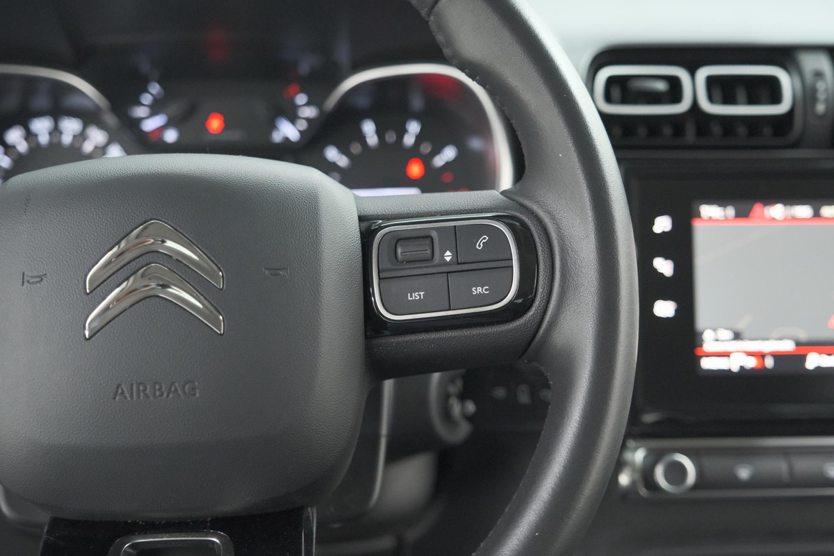 Praat tegen deze auto en de auto doet wat u wilt dankzij de ingebouwde spraakbediening. Het full map navigatiesysteem brengt u soepel en vlot naar uw bestemming. Ook over uw schouder ziet u onderweg niet alles wat er aan de achterzijde gebeurt. Daarom heeft deze Citroen C3 Aircross een achteropkomend verkeer waarschuwing. U verwacht natuurlijk automatische airconditioning in deze auto, en die is er dan ook. Geen onnodige spaghetti van oplaadsnoertjes voor de smartphone: deze Citroen C3 Aircross heeft een draadloze oplaadmogelijkheid voor telefoons. De Citroen is standaard voorzien van: DAB ontvangst, parkeersensoren achter, regensensor, cruise control, automatisch dimmende binnenspiegel en lederen stuur.
