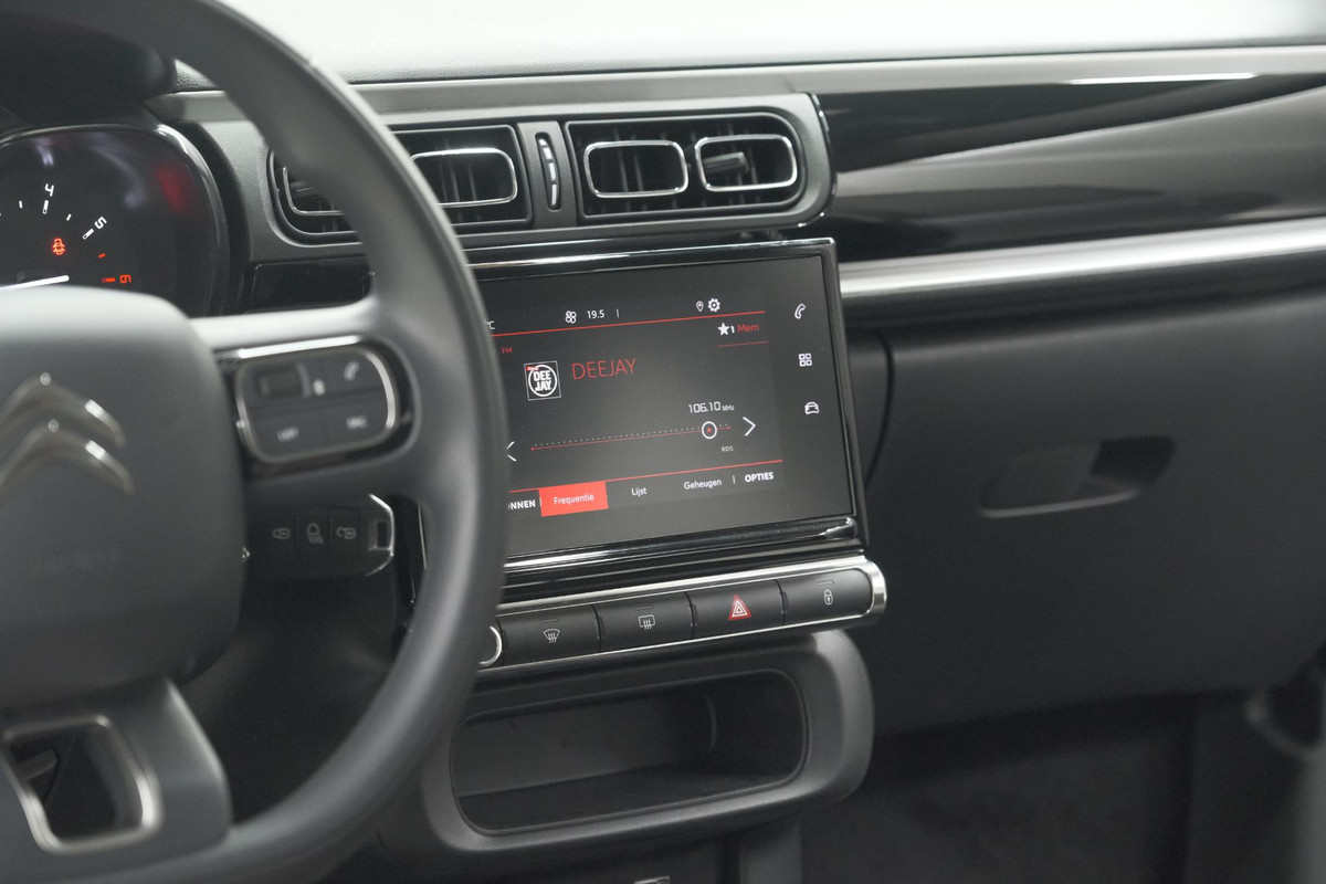 Aan boord van deze Citroen C3 is een achteropkomend verkeer waarschuwing voor extra veiligheid. Het comfort wordt verhoogd door de aanwezige automatische airconditioning. Switchen van radiozender of het geluid dempen - het gaat gemakkelijk en veilig dankzij de audiobediening op het stuur. De DAB-ontvanger zorgt voor een ruime keuze uit digitale radiozenders en een kristalheldere geluidsweergave. Liever gepiep dan gekraak? Dan zult u blij zijn met de aanwezige parkeersensoren! Wat u ook in deze auto kunt vinden zijn regensensor, cruise control, automatisch dimmende binnenspiegel, centrale deurvergrendeling met afstandsbediening, boordcomputer en verstelbaar stuur.
