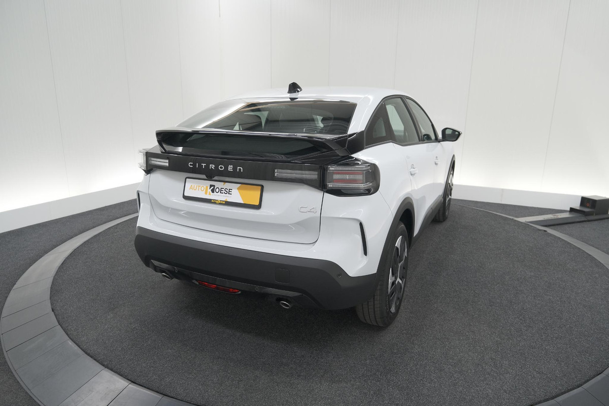 Met zijn inventieve techniek is de hybride Citroen C4 tegelijk comfortabel en zuinig met brandstof. Deze auto uit 2025 heeft nauwelijks gereden, met een tellerstand van slechts 3416 kilometer. Deze Citroen C4 heeft in feite twee motoren: een voor benzine en een elektronische. Deze hybride oplossing biedt het beste van beide! Voorzien van een lederen interieur: stijl en kwaliteit voor u en uw passagiers! De verwarmbare voorstoelen zijn een heerlijke extra optie, waarmee u uzelf en uw bijrijder een groot plezier doet. De comfortstoelen van deze Citroen C4 staan bekend om hun goede zithouding. In deze auto profiteert u onder andere ook van: 18 inch lichtmetalen velgen, Full LED koplampen, geluidsisolerende ramen, in delen neerklapbare achterbank en verstelbare lendensteunen.