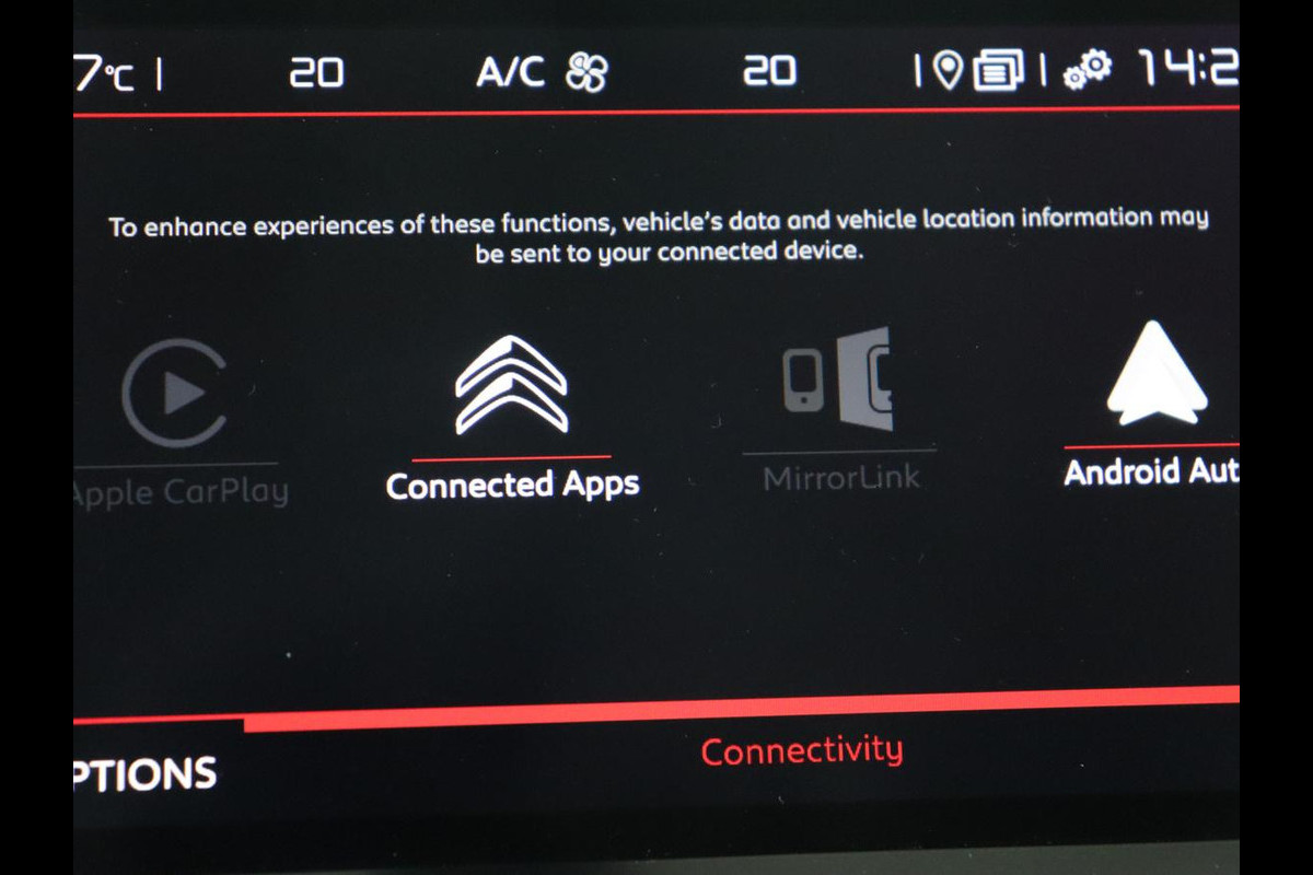 In één oogopslag heeft u alle benodigde functies onderweg in beeld, dankzij het slim ingedeelde digitale dashboard. Het gebruik van de 360 graden camera op deze auto vergemakkelijkt het parkeren aanzienlijk, vooral in krappe ruimtes. Adaptive cruise control is een comfortabele en veilige optie. Het systeem reguleert de snelheid en houdt automatisch afstand tot uw voorligger. Pech oplossen en zelfs voorkomen? Gaat eenvoudig. Via Connected Services heeft u alle data in de hand, gewoon op de smartphone! Een goede veiligheidsvoorziening is de spraakbediening en stuurbediening voor belangrijke functies. De auto is natuurlijk voorzien van een full map navigatiesysteem en het audiosysteem biedt glasheldere geluidskwaliteit dankzij DAB-ontvangst. U bent in deze Citroen ook voorzien van automatische airconditioning, draadloos opladen, regensensor, keyless entry, automatisch dimmende binnenspiegel en lederen stuur.