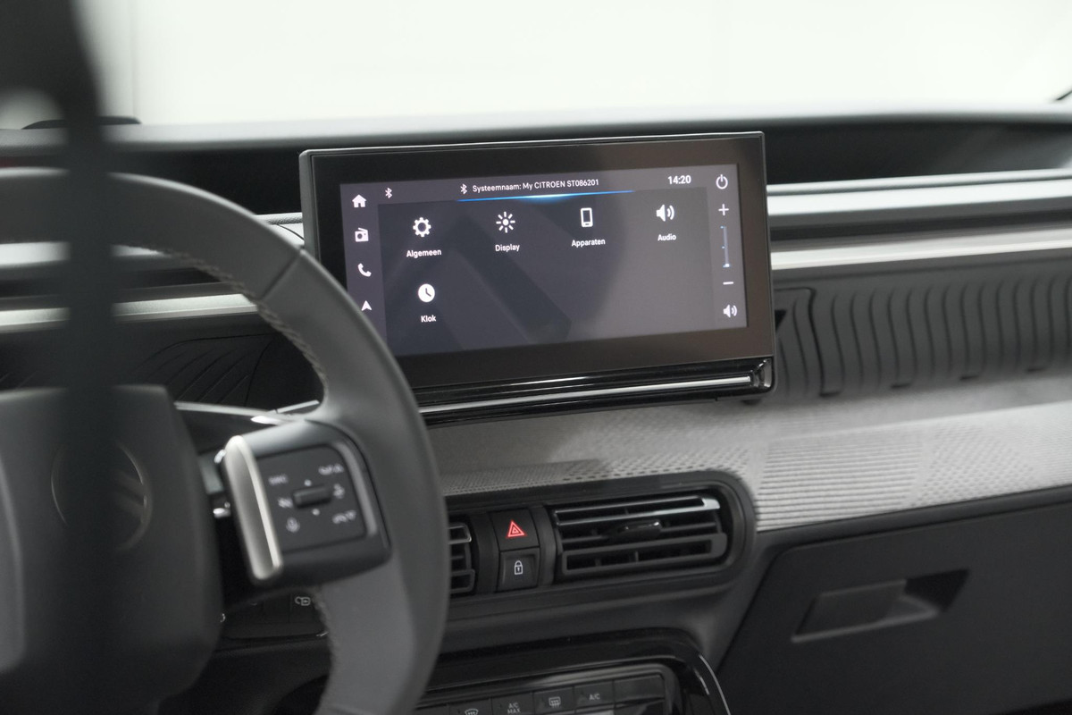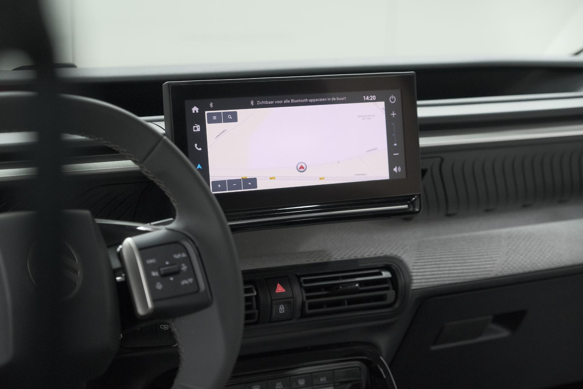 Connected Services voegt nog meer comfort en veiligheid toe aan deze auto. Gemakkelijk en veilig is de spraakbediening voor het audio-installatiesysteem en het full map navigatiesysteem. Daarbij kunt u deze ook bedienen met de knoppen op het stuur. De audio-kwaliteit is geweldig, dankzij de DAB-ontvangst. Gedoe met kabels en stekkers in de sigarettenaansteker is voorbij. De aanwezige draadloze oplaadmogelijkheid voor telefoons zorgt voor wireless recharging van uw smartphone. Parkeerplekken worden er niet ruimer op. Maar met de aanwezige parkeersensoren krijgt u deze Citroen Ë-C3 zonder problemen op z'n plaats. Het hoort bij een intelligente auto als deze dat hij zelf in staat is om zijn omgeving in de gaten te houden. Dat doet deze Citroen met een automatisch inschakelbare verlichting en een regensensor. Extra opties op deze auto zijn: cruise control, airconditioning, centrale deurvergrendeling met afstandsbediening en verstelbaar stuur.