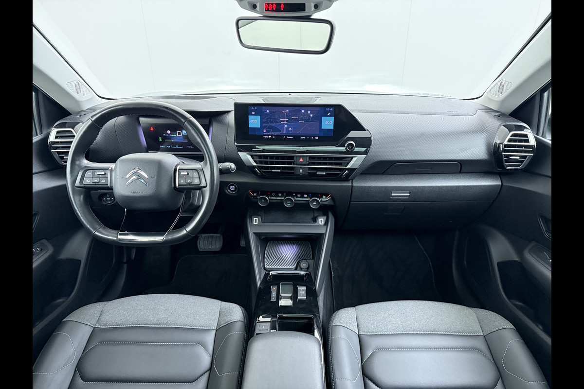 Citroën Ë-C4 50kWh SOH 100% Panorama-Schuifdak Stoel+Stuurverwarming Head-Up Display Adap.Cruise 360°Camera Apple Carplay Android Auto Navi E Keyless Lmv Led Isofix DAB Lane Assist Voorruitverwarming Regen-Lichtsensor Dodehoek detector Bluetooth Rijstrooksensor