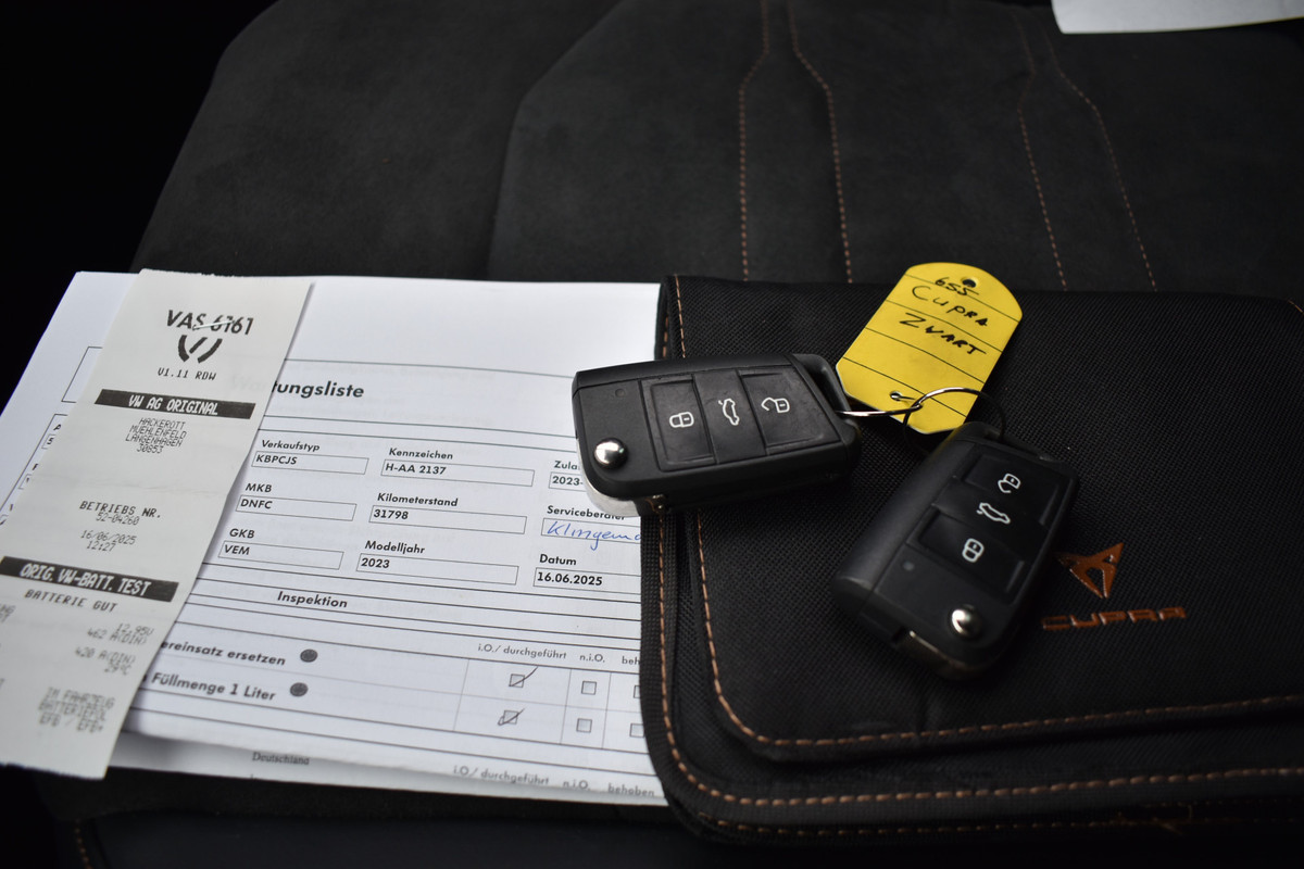 Compleet met vele opties en extra`s o.a: volledig digitaal instrumentenpaneel, entertainment systeem navigatie/bluetooth/audio, beats audio geluidsinstallatie, half leder / alcantara interieur, sportstoelen, stoel verwarming, multifunctioneel CUPRA sport stuurwiel incl. stuurwiel verwarming, automatische airco, cruise-control, LED verlichting met LED koplampen, parkeer sensoren voor en achter, 360 graden camera, parkeerhulp automatisch inparkeren, buitenspiegels elektrisch inklapbaar verstelbaar en verwarmbaar, LED verlichting, zwarte hemelbekleding, 19inch lichtmetalen velgen, en nog veel meer!