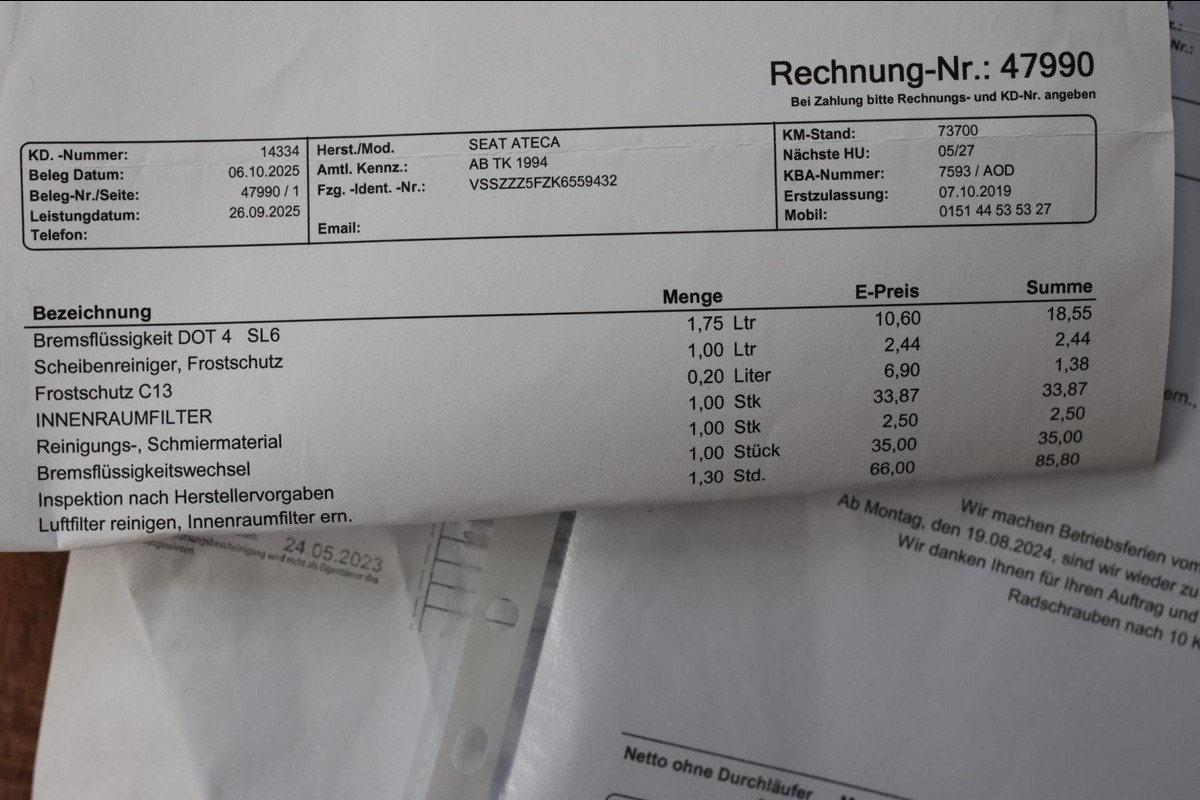 Onderhoudsboekjes: Aanwezig