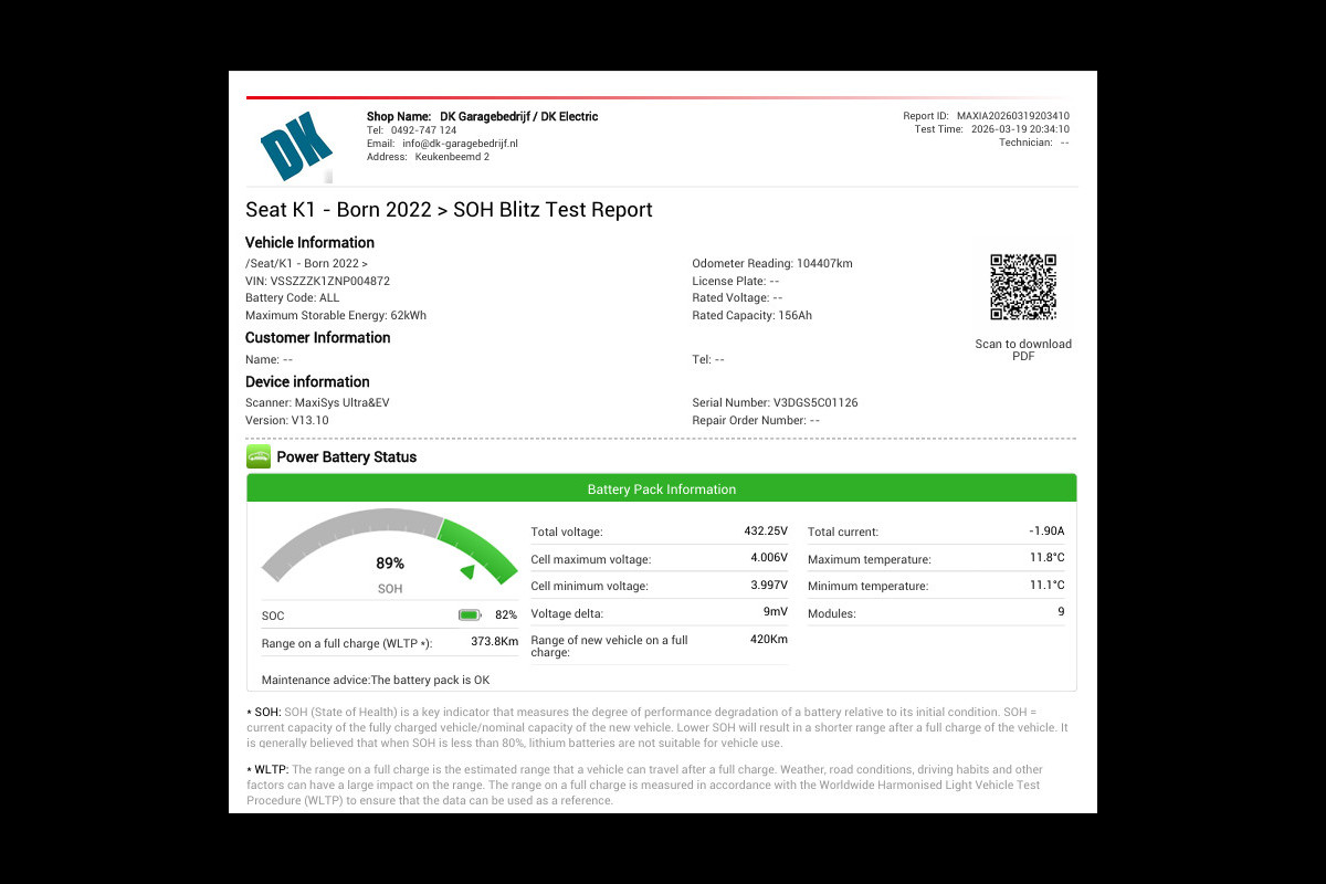 Accu: 58 kWh, Conditie: 89%
