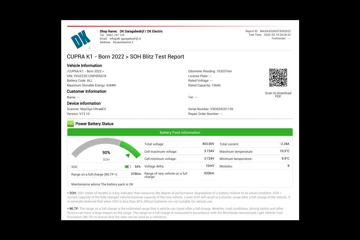 Accu: 58 kWh, Conditie: 90%