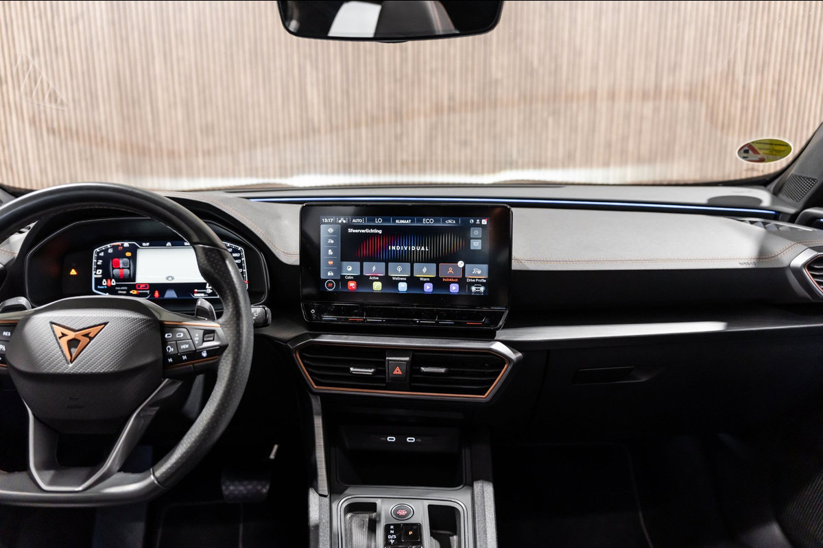U ziet het al aan de buitenkant en u voelt het zodra u de krachtige motor start, deze sportieve Cupra Formentor is gemaakt om prestaties te leveren. De aandrijving van deze Cupra wordt verzorgd door een viercilinder motor en een automatische transmissie. Bij de complete uitrusting van deze auto hoort ook stoelverwarming. Voor extra lichtinval en een frisse luchtstroom zorgt het elektrisch bediende panoramadak. Bij deze Cupra Formentor is aan alles gedacht, tot en met een verwarmd stuurwiel aan toe. U wordt in deze auto ook getrakteerd op LED-dagrijverlichting, extra getint glas, in delen neerklapbare achterbank, LED-achterlichten, verstelbare lendensteunen en snelheidsafhankelijke stuurbekrachtiging.