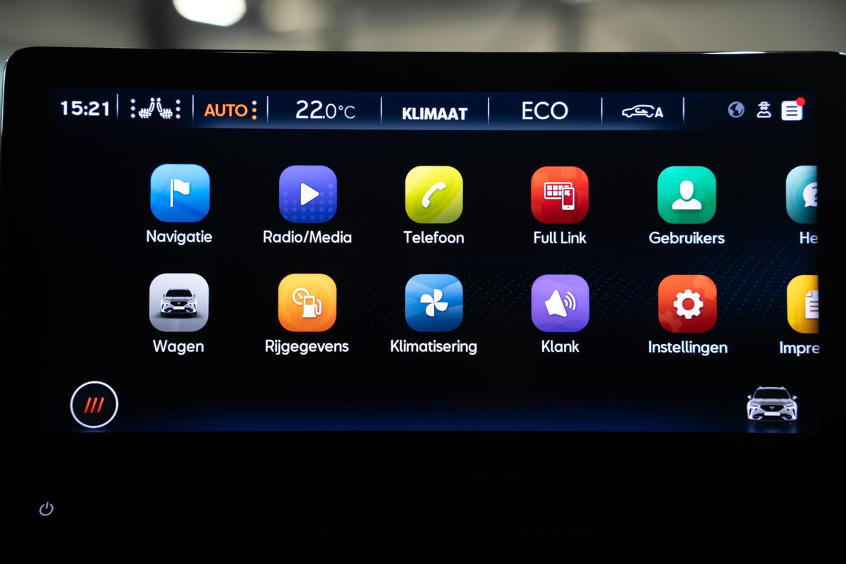 Zoals u mag verwachten van deze CUPRA Formentor is hij uitgerust met een reeks aan actieve veiligheidssystemen. Een belangrijke bijdrage aan de veiligheid onderweg levert de verkeersbord-detectie. Ongemerkt buiten de rijstrook raken? Nee hoor, het Lane-keeping systeem waarschuwt en corrigeert. De forward collision warning reduceert het gevaar van een botsing met een voorligger significant. In deze CUPRA vinden we verder een dodehoekdetectie, hill hold functie, vermoeidheidsherkenning, autonoom remsysteem en bandenspanningcontrolesysteem.