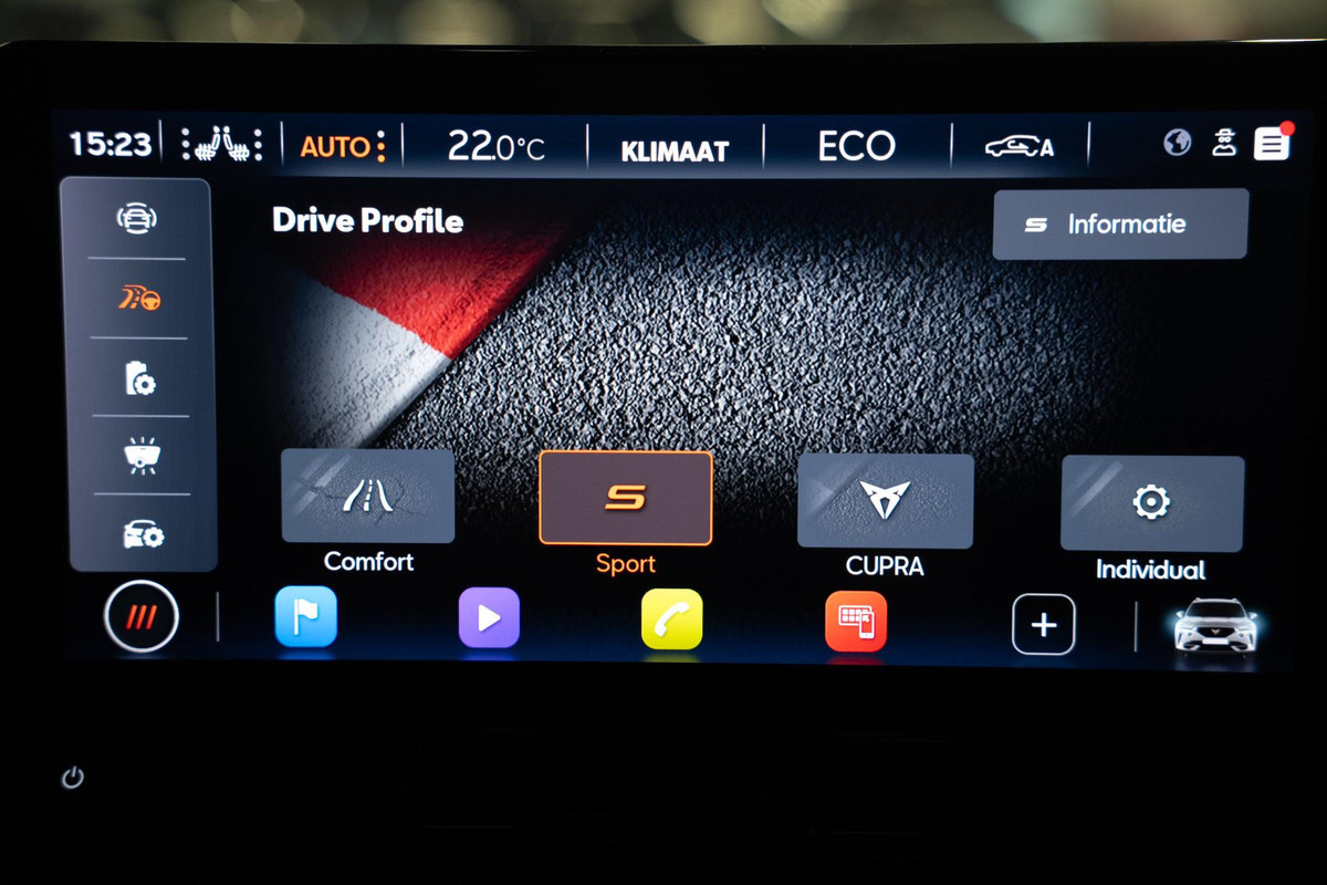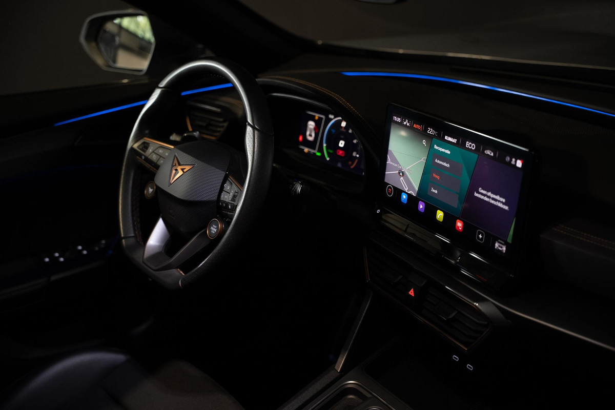 Met zijn ruimte en zijn prestaties is dit de auto die bij u past. Elektrisch rijden of benzine? Deze hybride CUPRA Formentor combineert de pluspunten van allebei naar keuze. De verwarmbare voorstoelen zijn een weldaad voor rug en schouders. De sportstoelen geven het interieur van deze Formentor een super strakke en sportieve uitstraling. Het interieur baadt in daglicht dankzij het elektrisch bediende glazen panoramadak. De elektrische achterklep opent met een druk op de knop, zodat u gemakkelijk toegang heeft tot de bagageruimte. Als de 'r' in de maand zit, komt zo'n verwarmd stuurwiel als geroepen! Bij de uitrusting van deze CUPRA horen onder meer 19 inch lichtmetalen velgen, LED koplampen, adaptief dempingsysteem, extra getint glas, in delen neerklapbare achterbank en LED-achterlichten.