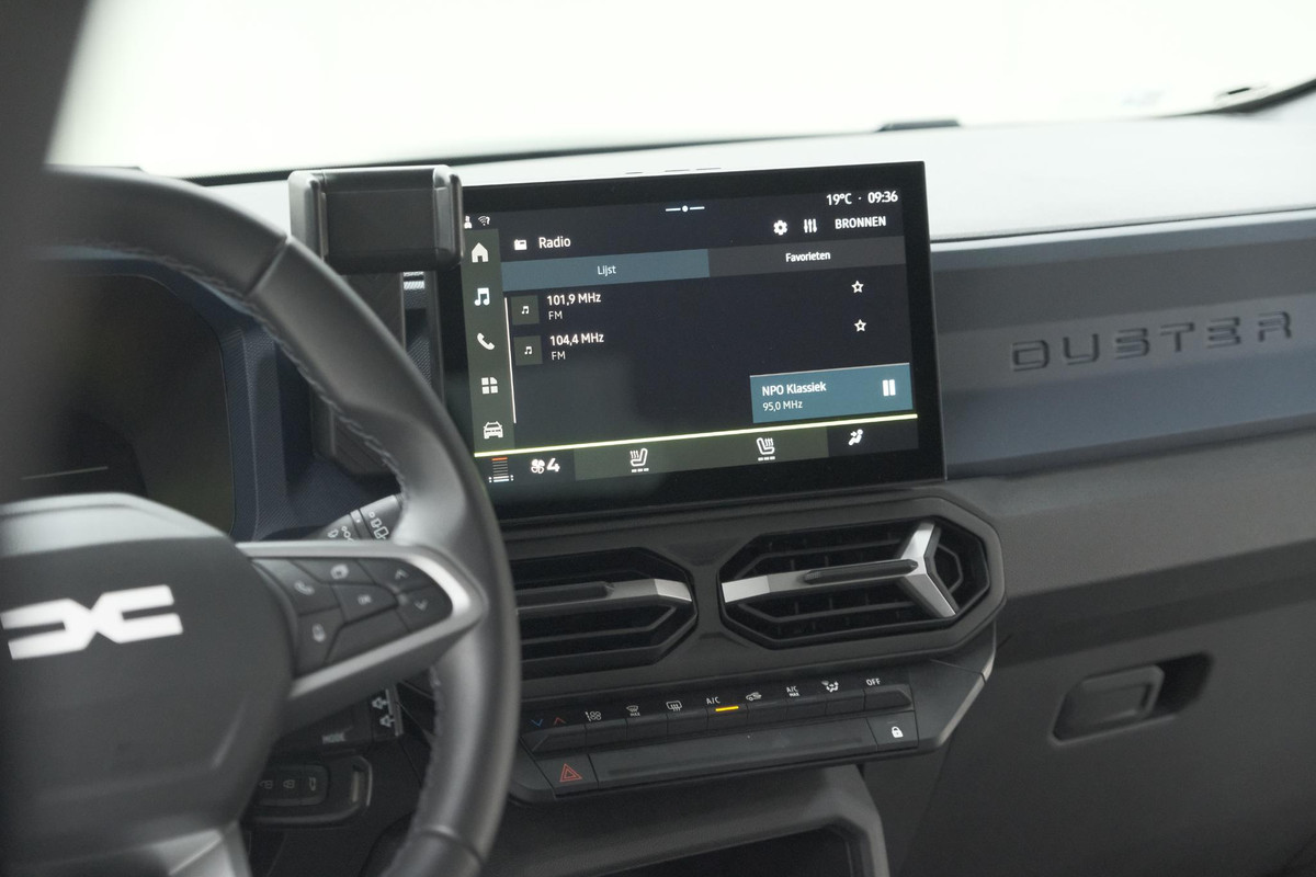 Rij- en route-info wordt perfect in beeld gebracht door het digitale dashboard. Met een gerust hart achteruitrijden? Dat kan, dankzij de achteruitrijcamera. Het audio-installatiesysteem met DAB-ontvangst en het navigatiesysteem bedient u veilig met knoppen op het stuur. Om de veiligheid onderweg te verhogen, heeft deze Dacia zowel een automatisch inschakelbare verlichting als een regensensor aan boord, zodat hij zelf de verlichting en de ruitenwissers kan inschakelen. Op een rustige weg komt de cruise control helemaal tot z'n recht. Wat u ook in deze auto kunt vinden zijn airconditioning, centrale deurvergrendeling met afstandsbediening, boordcomputer en verstelbaar stuur.