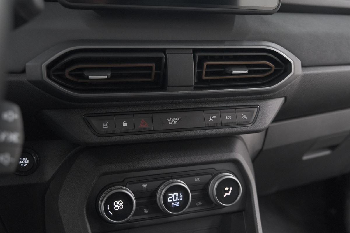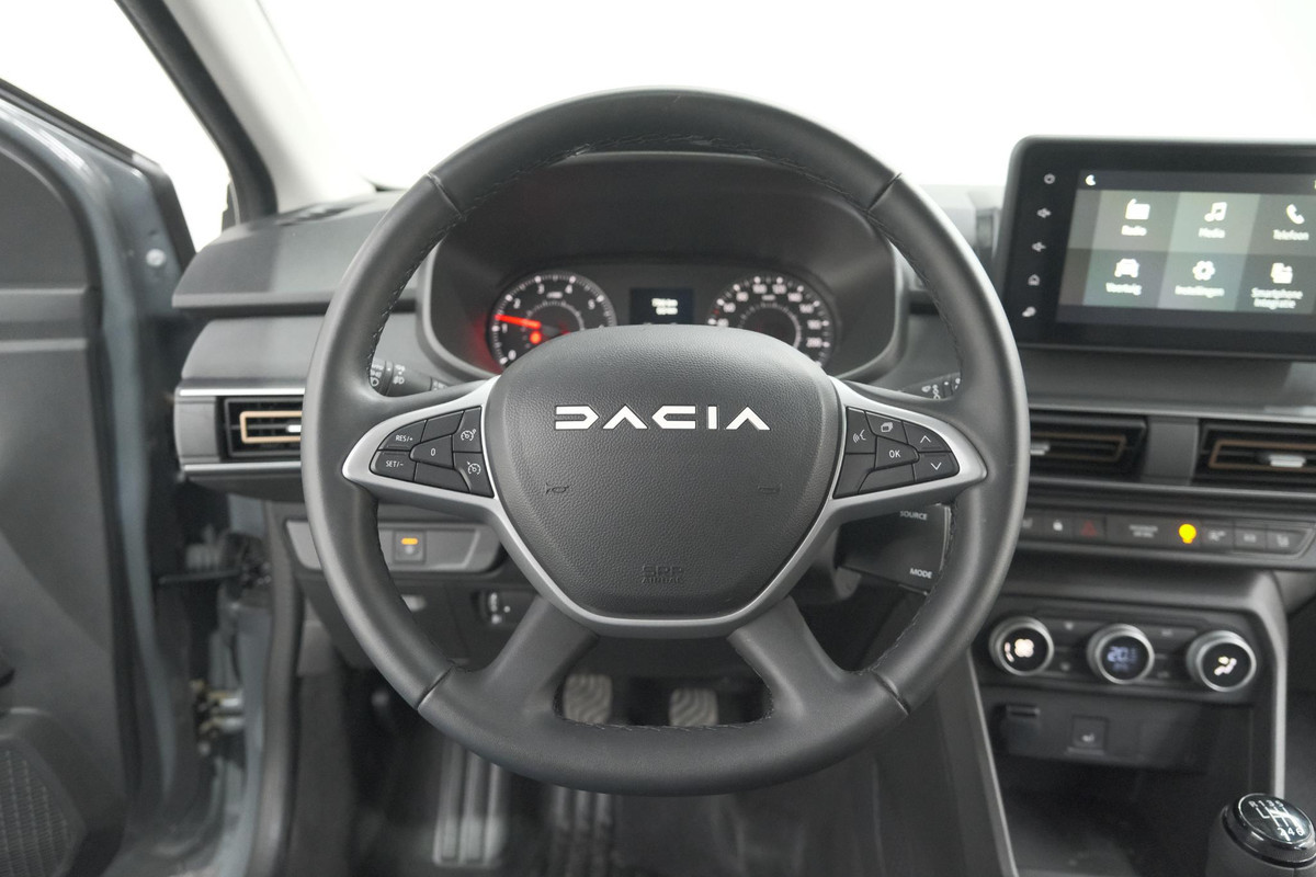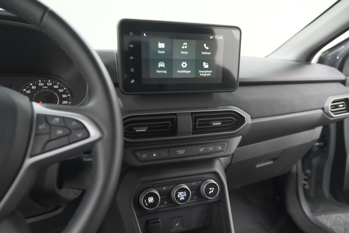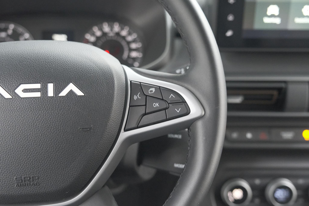 Kinderfietsje niet gezien bij het inparkeren? Dat gebeurt u nooit meer. Daar zorgt de achteruitrijcamera wel voor! Met spraakbediening of de knoppen op het stuur regelt u het audio-installatiesysteem, terwijl u uw blik op de weg gericht houdt. De audio-installatie biedt daarbij glasheldere ontvangst dankzij dab-ontvangst. Bij het wisselen van rijbaan kan een dode hoek ontstaan waardoor achterliggers te dichtbij kunnen komen. De achteropkomend verkeer waarschuwing geeft in dat geval automatisch een signaal. Automatische airconditioning verwarmt of koelt het interieur met een druk op de knop. Om de veiligheid onderweg te verhogen, heeft deze Dacia zowel een automatisch inschakelbare verlichting als een regensensor aan boord, zodat hij zelf de verlichting en de ruitenwissers kan inschakelen. Ook cruise control, keyless entry, boordcomputer en verstelbaar stuur zijn aan boord.