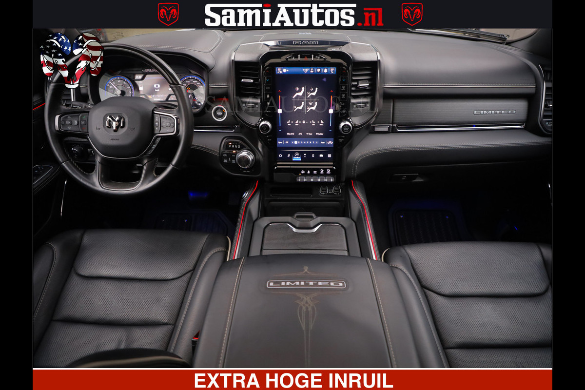 Dodge Ram HULK PACK | LIMITED SPORT | 5.7 V8 HEMI | FEUL WHEELS MAT BLACK | BOM VOL | CREW CAB 5 PERSOONS | DUBBELE CABINE DC | GRIJS KENTEKEN | SFEERVERLICHTING | HUD | LICHTVERING | PANODAK | FULL LED |