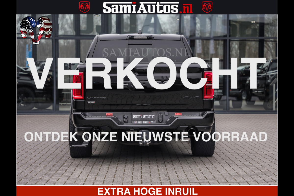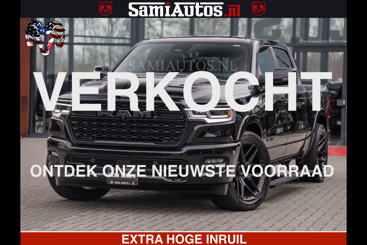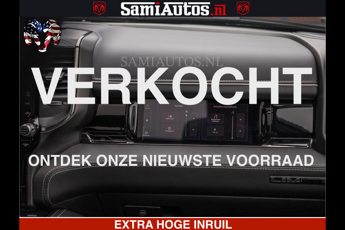 Dodge Ram LIMITED H.O 540 PK 706 Nm | FEUL WIELEN |XB9 | MASSAGE | BOM VOL | CREW CAB | DUBBELE CABINE | GRIJSKENTEKEN | 5 PERSOONS | DE MEEST LUXUEUZE en BEGEERDE Pick-up