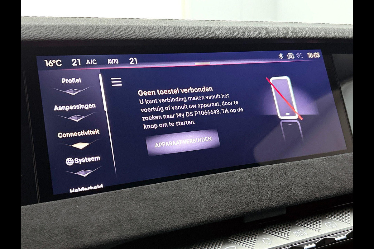 Duik in de digitale wereld van mobiliteit waar alles wat u nodig heeft voor een comfortabele en veilige rit, wordt geprojecteerd op het digitale dashboard. Bij het inparkeren hoeft u het laatste stukje niet te gokken: de achteruitrijcamera kijkt voor u uit. Adaptive cruise control is veilig en comfortabel. De snelheidsregelaar houdt automatisch afstand tot het voertuig dat voor u rijdt. In deze auto kunt u de belangrijkste functies bedienen met uw stem. Locatie, motorconditie, storingen... via Connected Services krijgt u alle vitale info over de auto door. Ook handig bij pech! De uitrusting van deze DS is met full map navigatiesysteem, electronic climate control, DAB ontvangst, regensensor, keyless entry en automatisch dimmende binnenspiegel behoorlijk compleet.