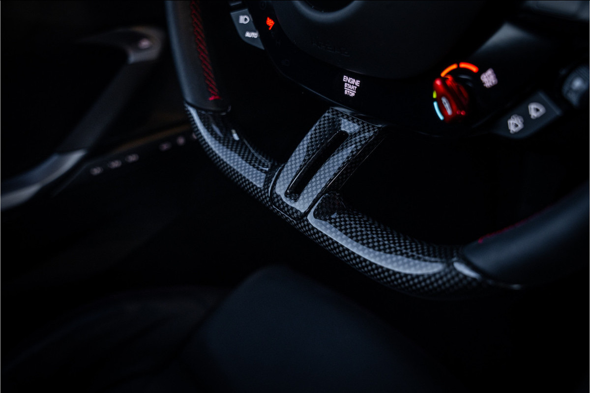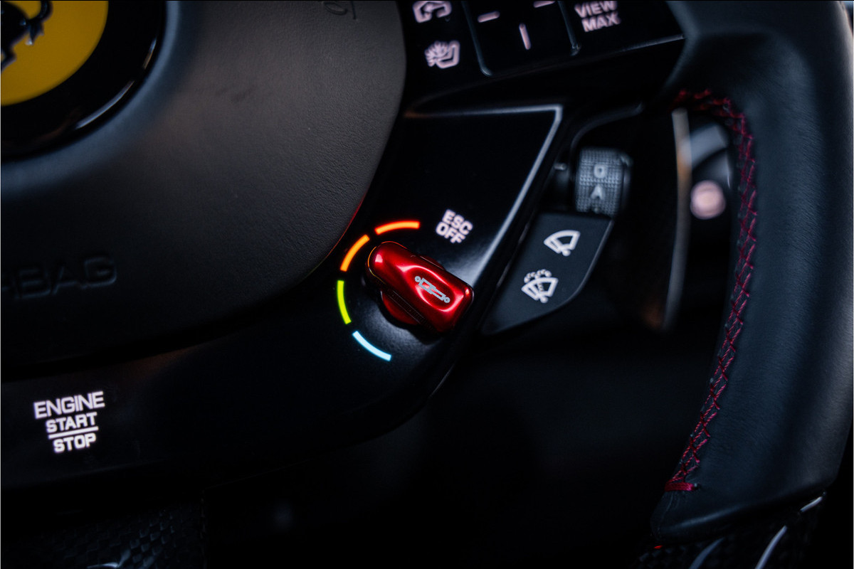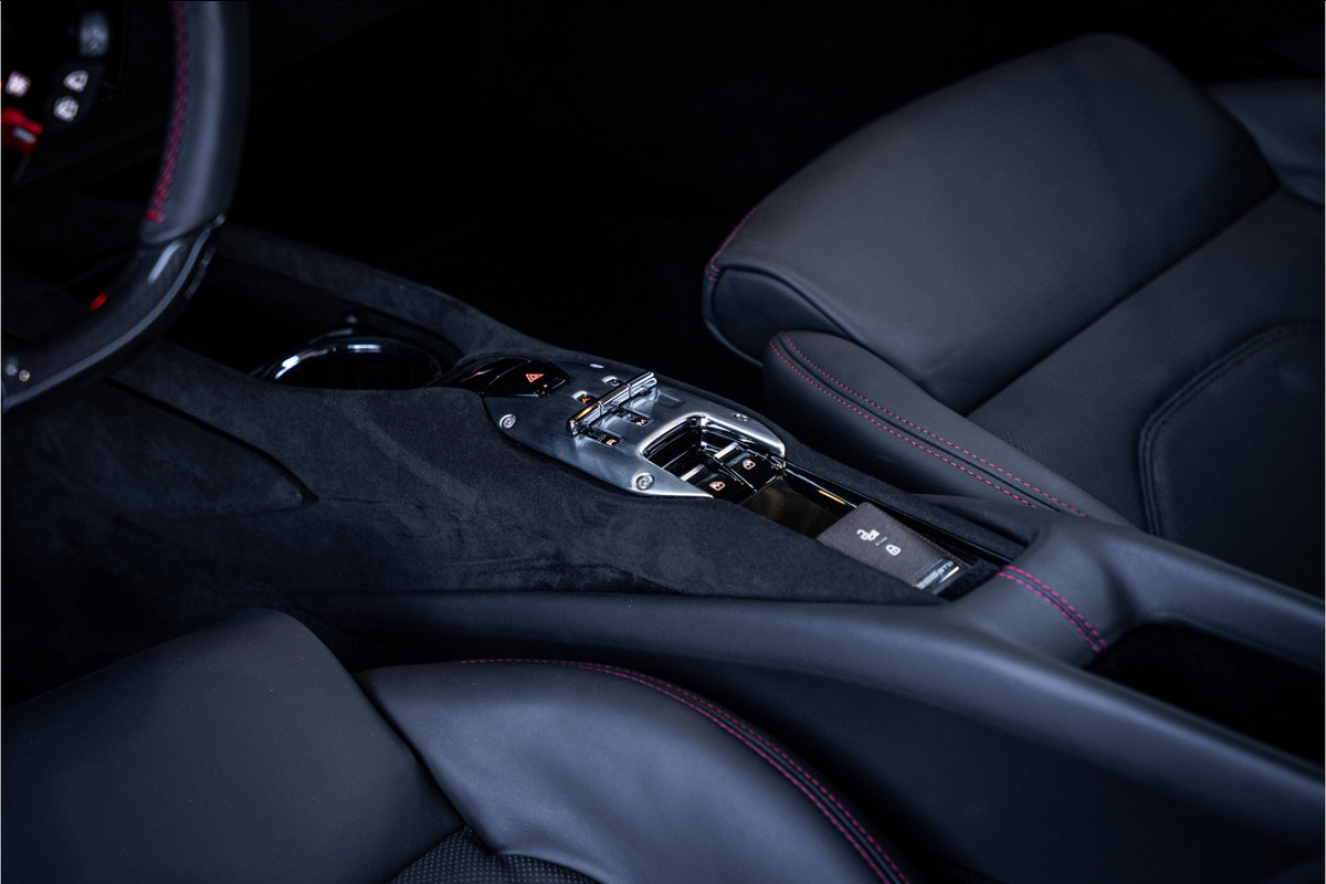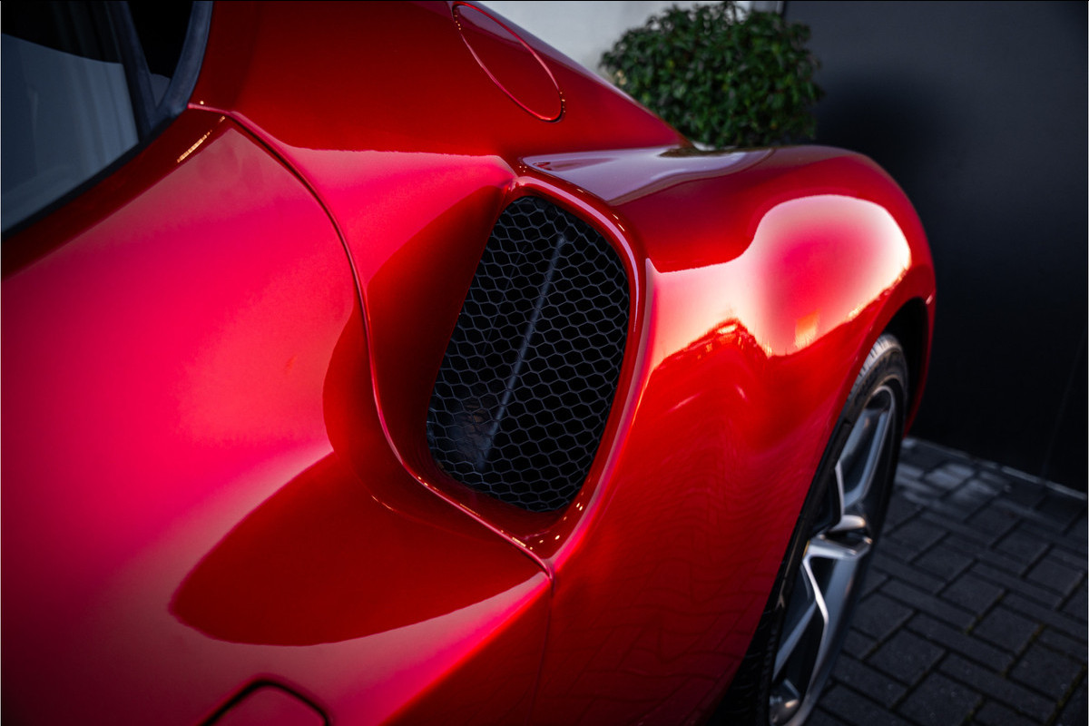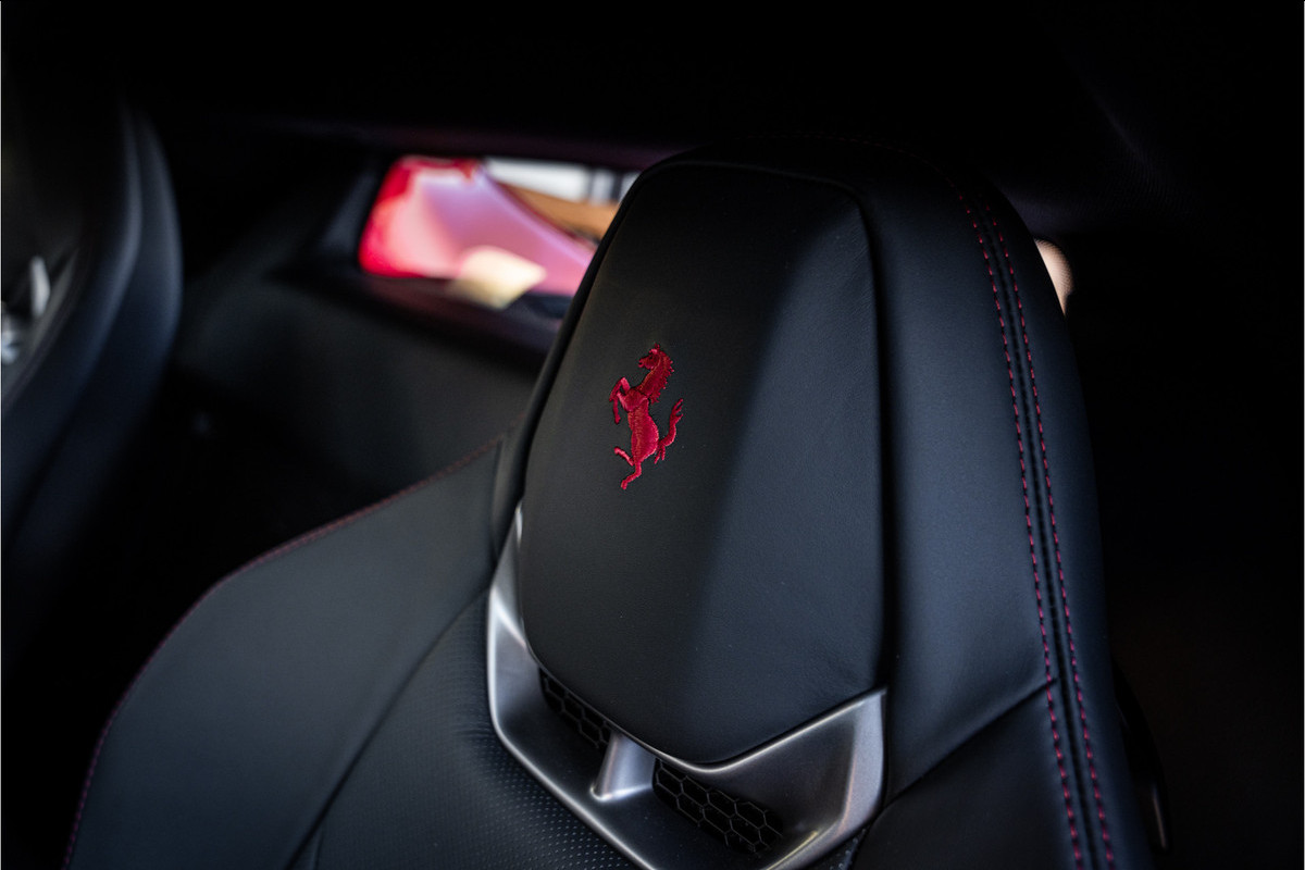 Het exterieur in Rosso Imola benadrukt de sculpturale lijnen van deze Ferrari op elegante maar dynamische wijze. De gespierde proporties, aerodynamische details en verfijnde luchtgeleiding geven de 296 GTB een zelfverzekerde presence op de weg en maken direct duidelijk dat dit een sportwagen met echte supercar-intenties is.