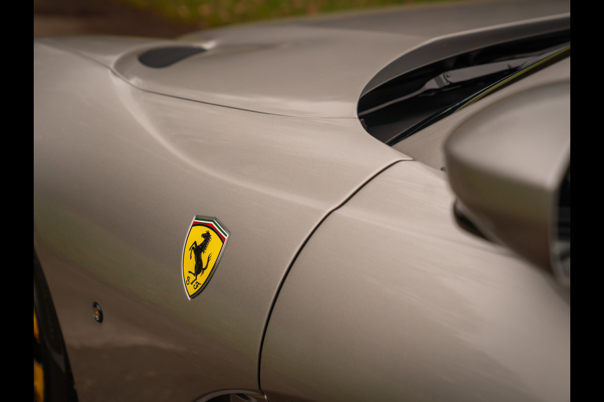 Over de schoonheid van de Ferrari 812 valt niet de discussiëren: dit is met gemak één van de fraaiste creaties uit Maranello uit de moderne tijd. De halfopen Gran Turismo Spider versie is favoriet vanwege de extra dimensie die dakloos rijden toevoegt. Bovendien roept de targa-achtige configuratie klassieke Ferrari 308 Magnum P.I. gevoelens op. Minstens zo charismatisch als Mister Magnum is de originele Aluminium Lucido carrosserielak. De intensiteit en speelsheid van de flinke hoeveelheid metallic in de lak is grotendeels afhankelijk van hoe het licht erop schijnt. In deze tijd van het jaar kunt u dus uw lol op. Behalve origineel, is de kleur uiterst stijlvol te noemen. Het zorgt voor een overall gedistingeerd voorkomen, terwijl racy details zoals de zwart gelakte Racing Wheels, antracietkleurige uitlaateindstukken, Giallo remklauwen en Scuderia Ferrari Shields op de voorschermen niets dan performance uitstralen. Al met al een even gewaagde als heerlijke combinatie.