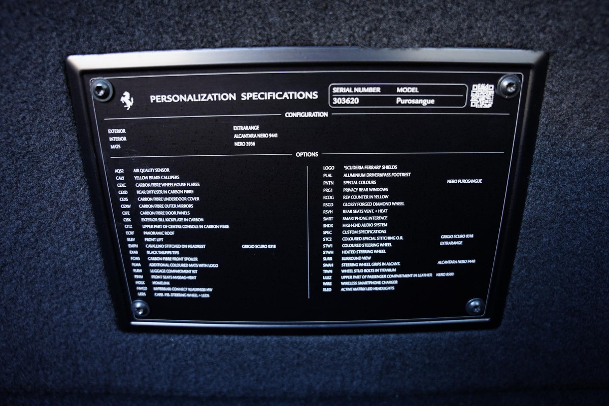 Uitgevoerd in Nero Purosangue Metallic met een stijlvol Nero alcantara-interieur, tot in detail samengesteld voor een perfecte balans tussen prestaties, luxe en exclusiviteit.